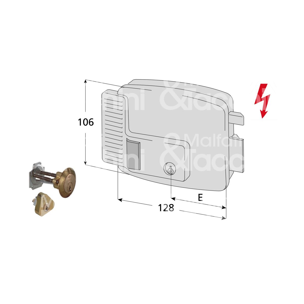 ELETTROSERRATURA applicare cilindro staccato 12V c.a. CE per portoni con pulsante scrocco autobloccante Fermo a giorno Figura mano DX