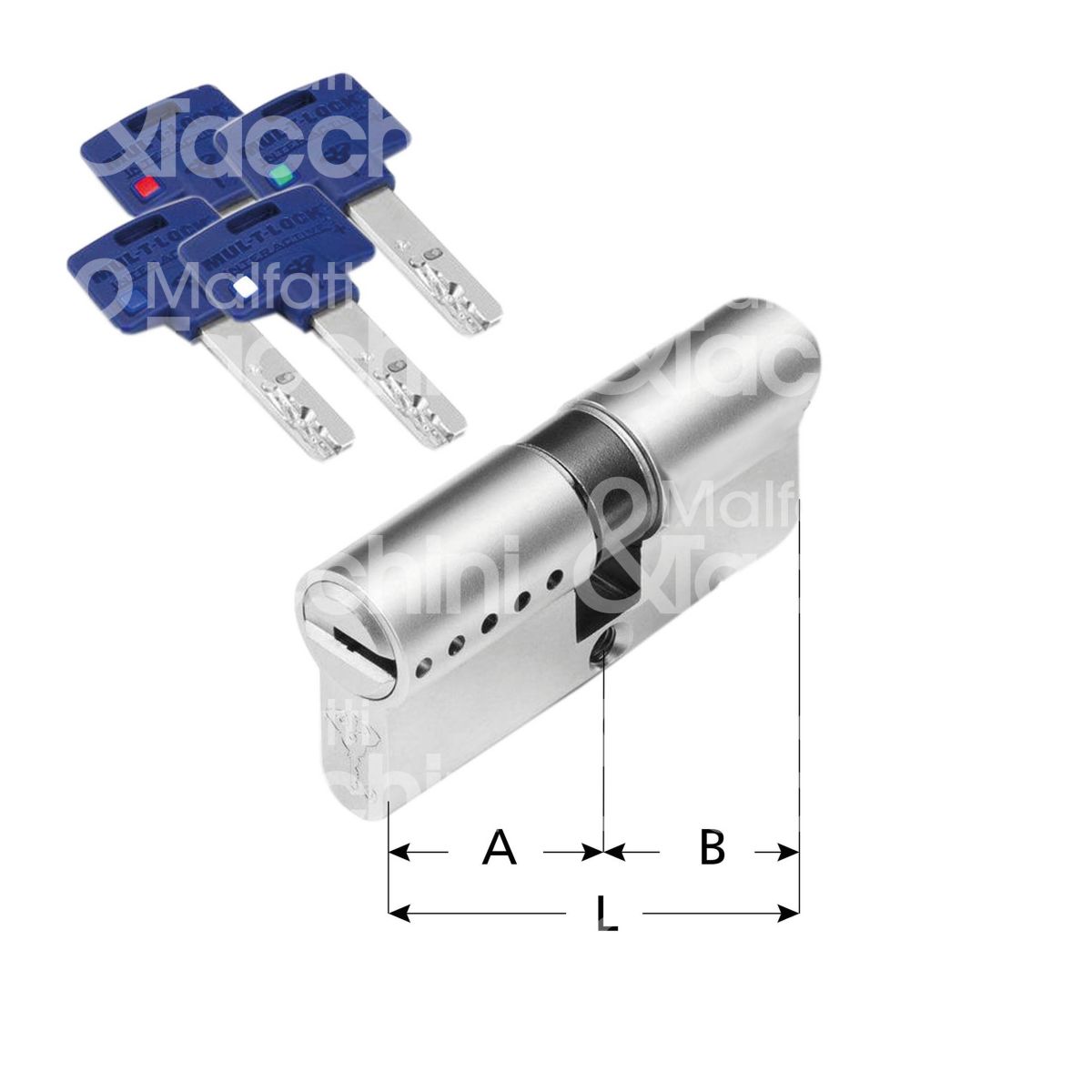 Mul-t-lock tlo3140n cilindro sagomato codolo rasabile 40 x 31 = 71 mm chiave punzonata cifratura kd cromo satinato