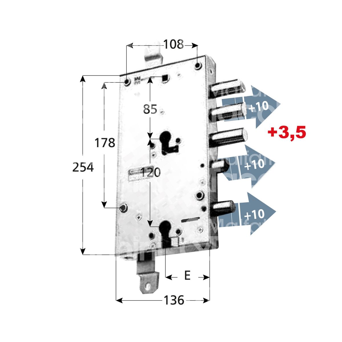 Mottura 898589almd serratura per blindata a doppio cilindro indip. per allmet triplice e 63 dx 3 catenacci piÙ scrocco e 1 servizio int. cat. 37 sporg. 13,5