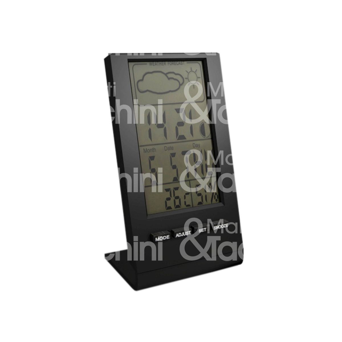 STAZIONE METEO CON SVEGLIA Funzioni: Orologio Calendario (mese, giorno, anno) Funzione di sveglia e snooze Misuratore umidità: dal 20% al 95% Previsione meteo Indicatore delle fasi lunari