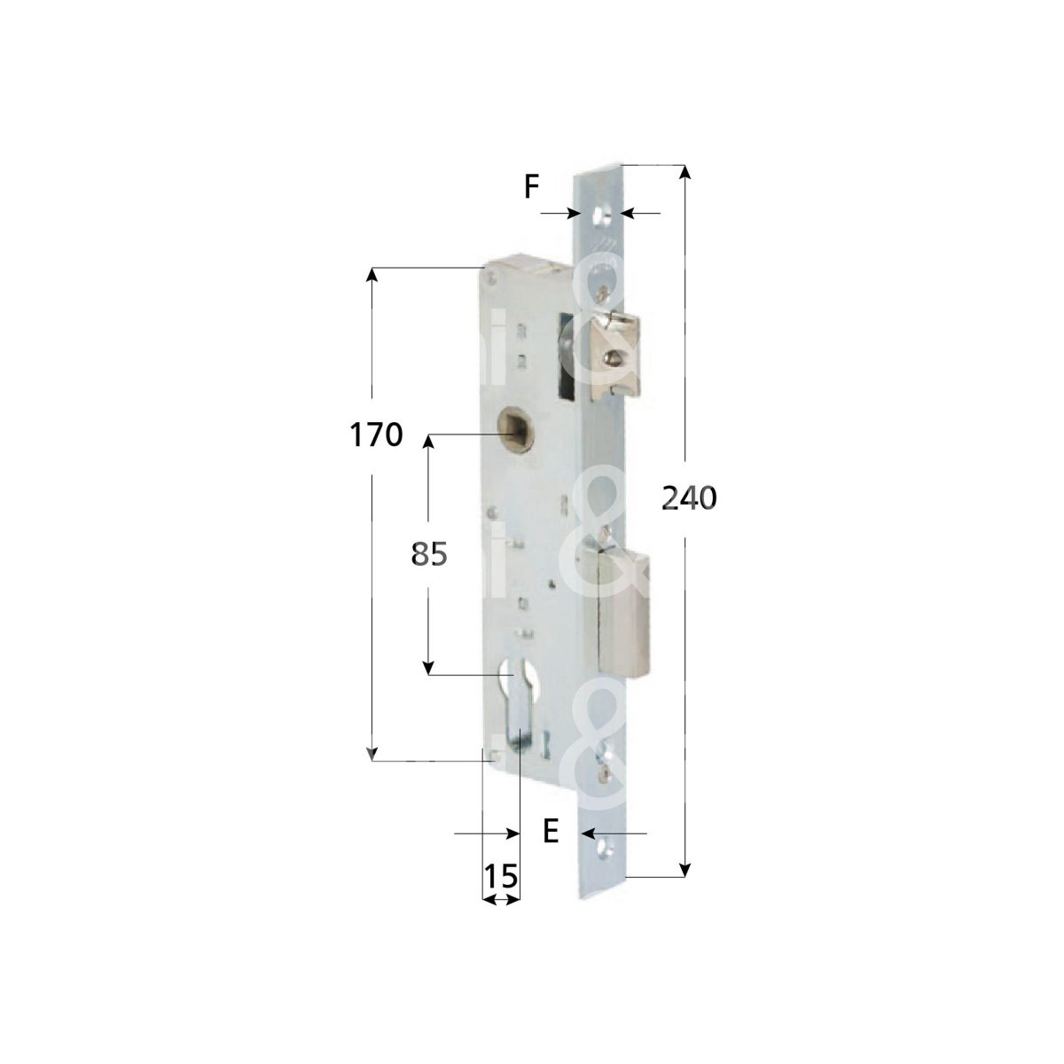 SERRATURA per montanti 2 mandate catenaccio e scrocco regolabili e reversibili Sostituisce serie 44625 Frontale con rivestimento in zinco Cilindro non incluso