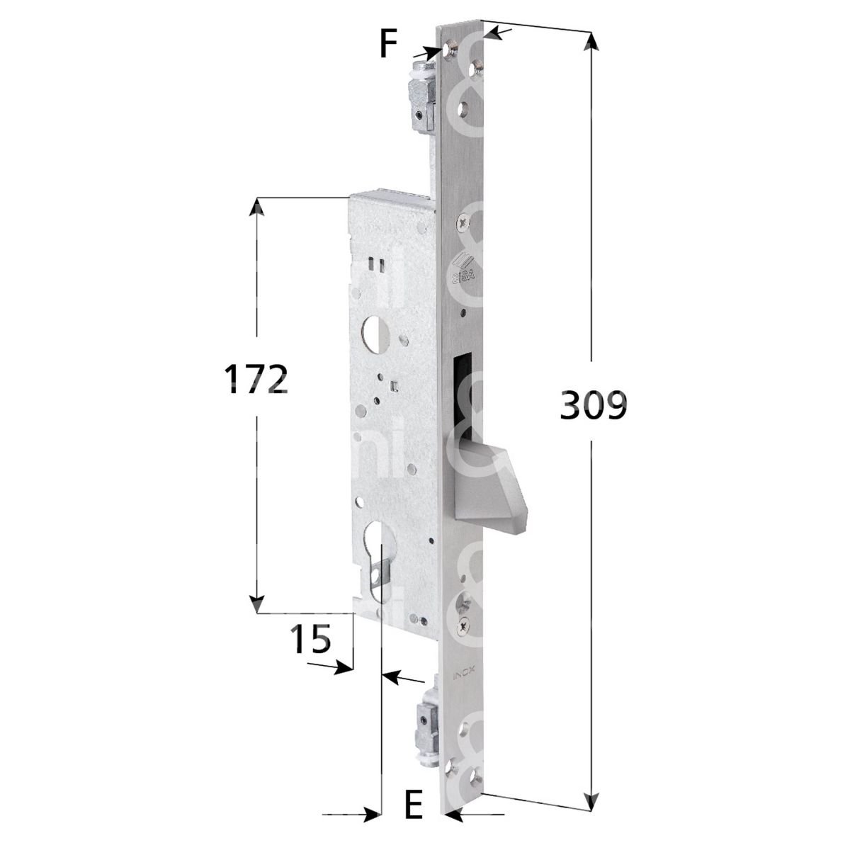 SERRATURA INFILARE PER INFERRIATE solo catenaccio Corsa rinvii 25 mm Front. INOX Predisposizione per chiusure supplementari con boccole filettate M8 Aste non incluse cilindro sagomato non compreso