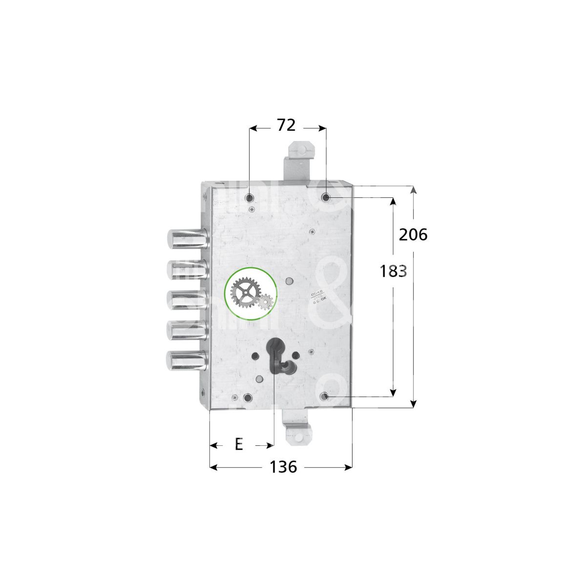SERRATURA PER BLINDATE A cilindro ad ingranaggi Serie RCI Solo catenacci Sporgenza catenacci 3,5 mm Aste non comprese Cilindro non incluso
