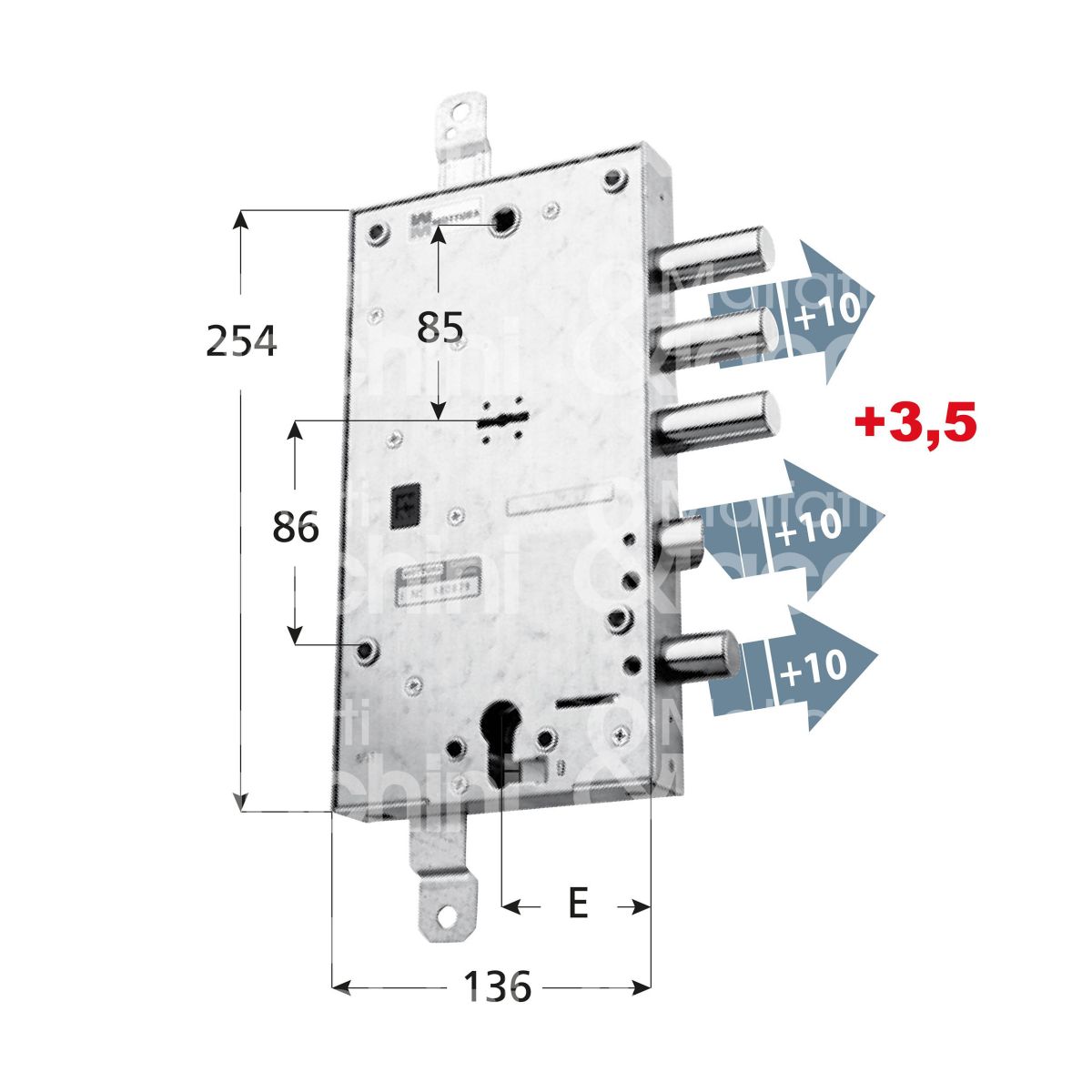 Mottura 89587almd serratura plurisistema con cilindro indipendente per allmet triplice e 63 dx 3 catenacci piÙ scrocco e 1 servizio int. cat. 37 sporg. 13,5