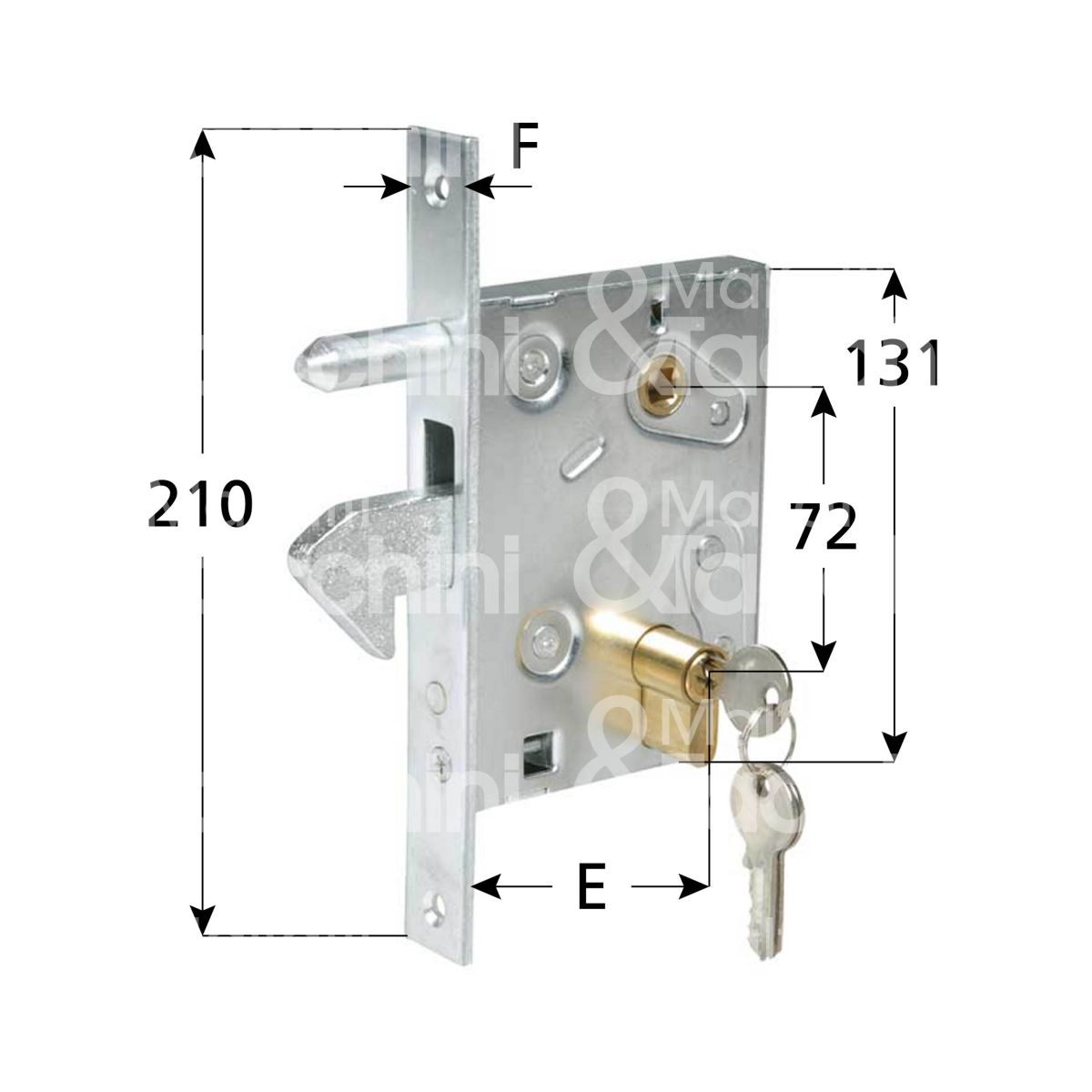 SERRATURA INFILARE A GANCIO PER CANCELLI SCORREVOLI Acciaio zincato Cilindro 54 mm 3 chiavi incluse