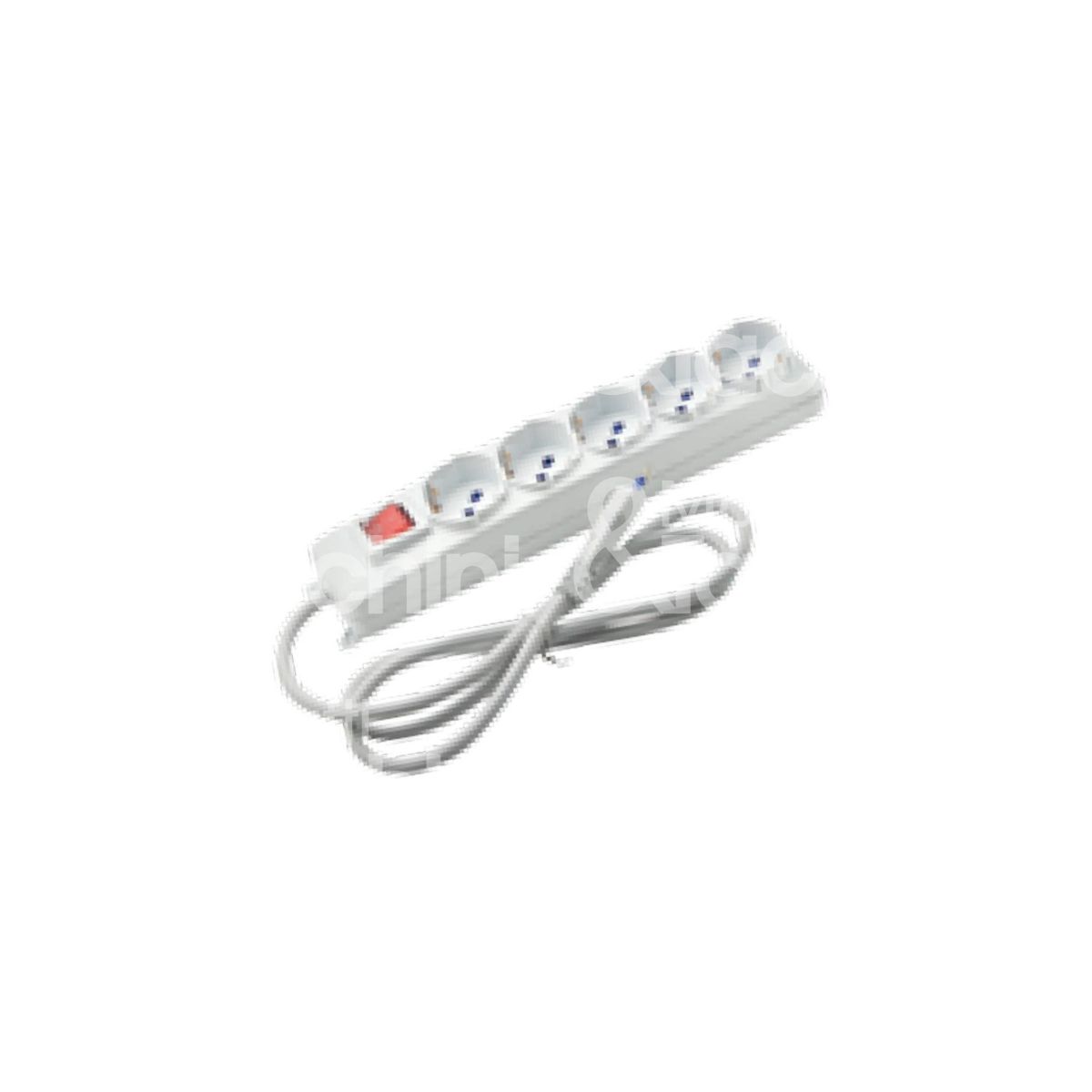 MULTIPRESA Art. 8162 5 Posti Con interruttore Spina: 2P+T - 16 A Prese: 5 universali 2P+T - 10/16 A Alveoli: protetti Cavo: H05VV-F 3G1 mm2 Lunghezza cavo: 1,5 mt Corpo: PPL non infiammabile Potenza massima: 2500 W Tensione nominale: 250 Vac