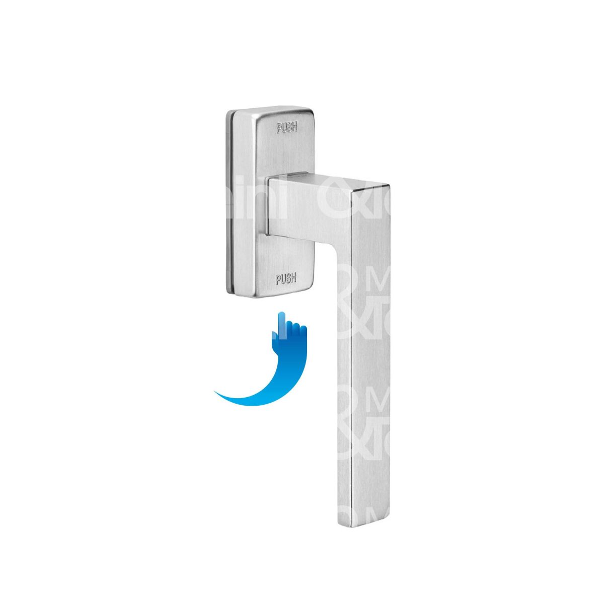 MARTELLINA CORNER ZINCRAL LINEA CALI' PER FINESTRA CON MOVIMENTO DK SMARTBLOCK Finitura: Cromo Satinato Particolare rosetta che blocca la rotazione della maniglia impedendo al ladro di entrare praticando un foro nel serramento Movimenti: 0° - 90° - 180° (vasistas) Installabile su tutti i tipi di infissi Dimensioni 33x156 mm