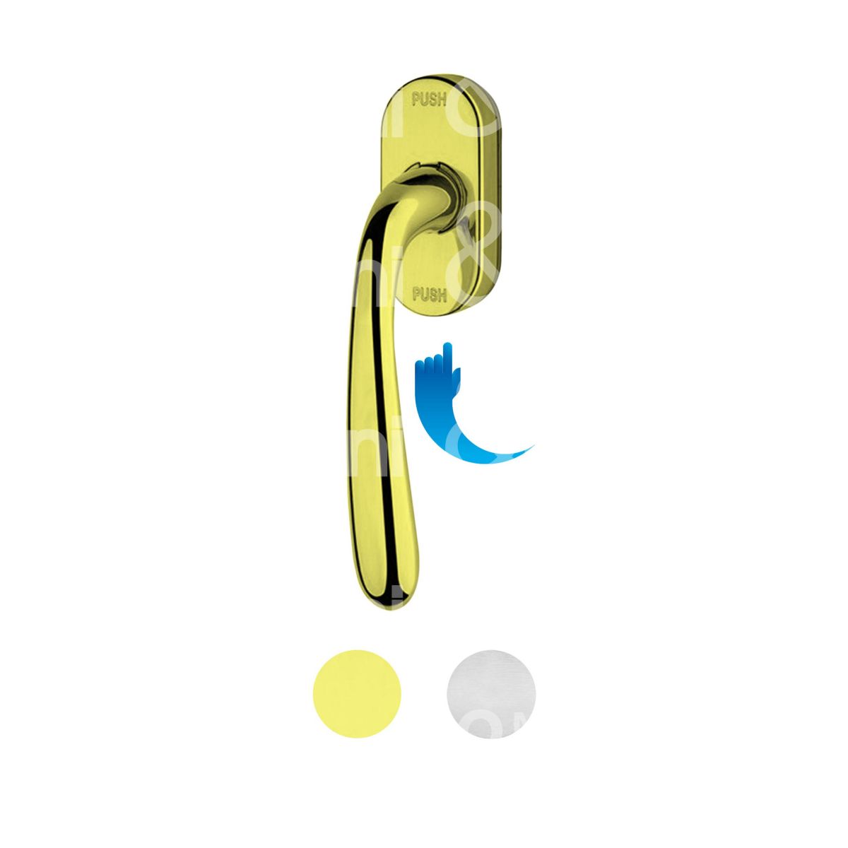 MANIGLIA GARDA ZINCRAL LINEA CALI' PER FINESTRA CON MOVIMENTO DK SMARTBLOCK Particolare rosetta che blocca la rotazione della maniglia impedendo al ladro di entrare praticando un foro nel serramento Movimenti: 0° - 90° - 180° (vasistas) Installabile su tutti i tipi di infissi Dimensioni 33x150 mm