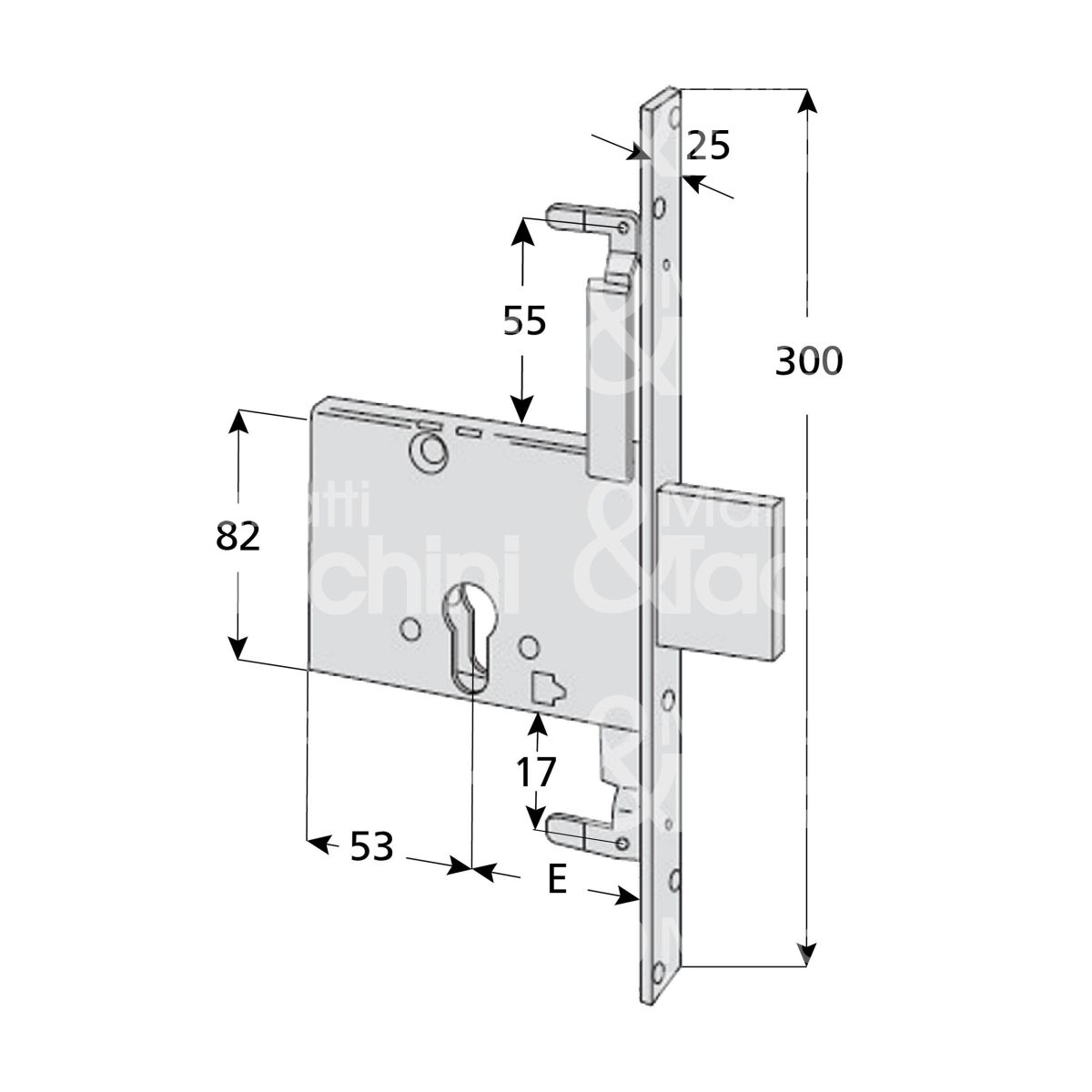 SERRATURA INFILARE Triplice Reversibile Predisposto per chiusure integrative Cilindro non incluso