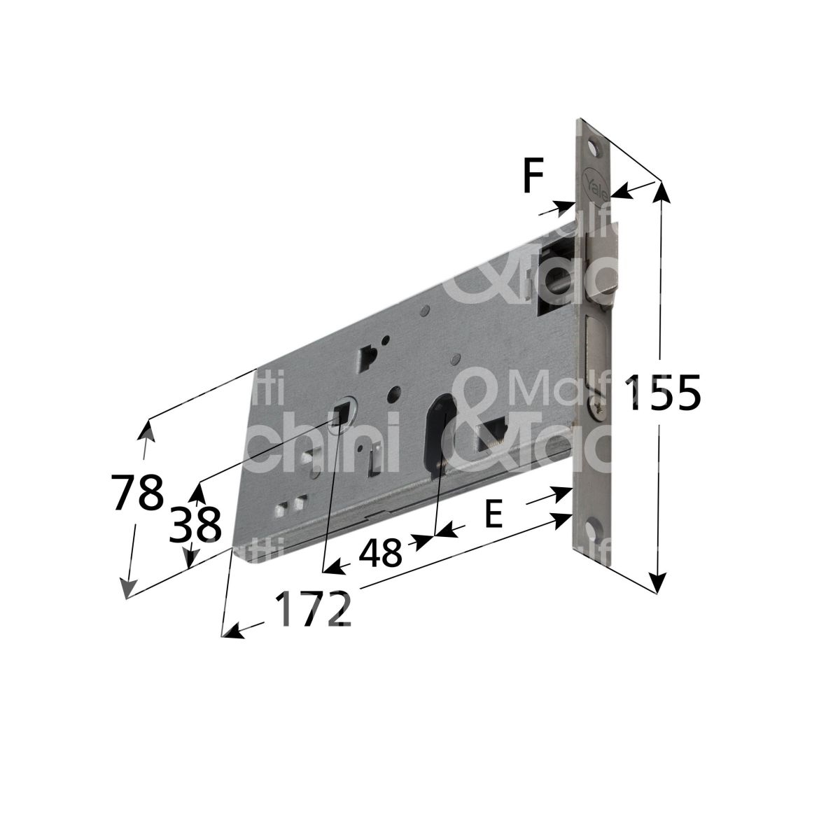 Yale 8600070080 serratura infilare per fasce 2 mandate cilindro ovale 70 laterale catenaccio piÙ scrocco
