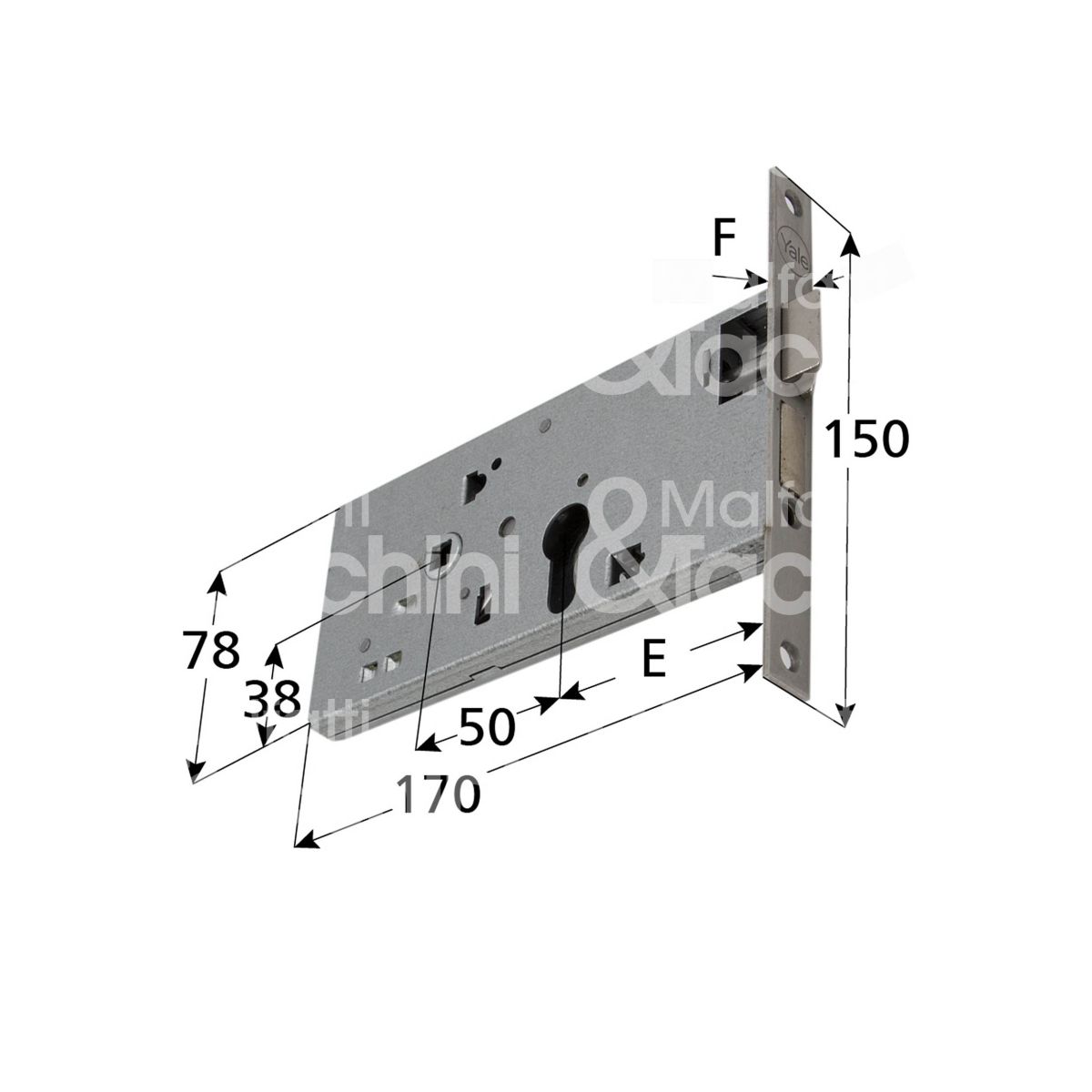 Yale 8600570080 serratura infilare per fasce 2 mandate cilindro sagomato 70 laterale catenaccio piÙ scrocco
