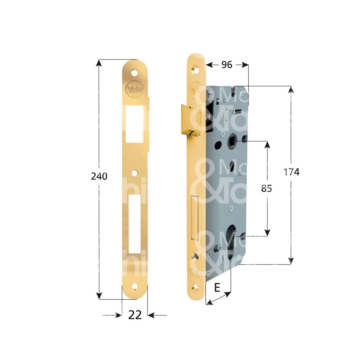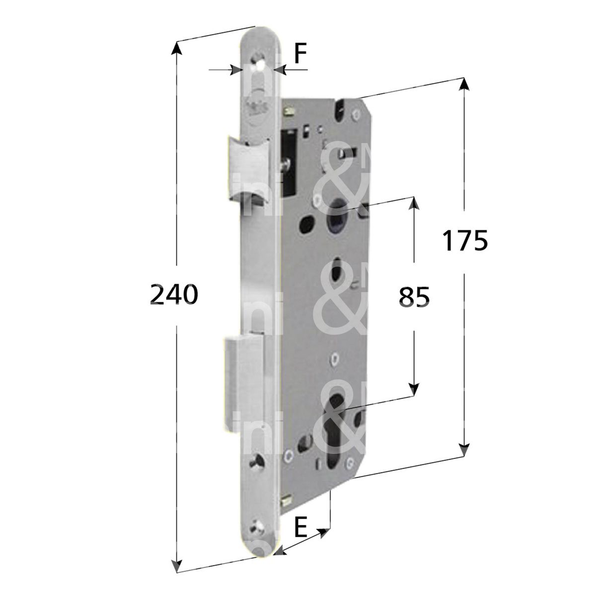 SERRATURA INFILARE PER PORTE IN LEGNO SERIE 52X BORDO TONDO Scrocco reversibile azionato dalla maniglia e chiave Catenaccio in acciaio azionato dalla chiave Frontale in acciaio Compatibile con maniglia Vitalia Art. 710D8812H ART. 710D8812V