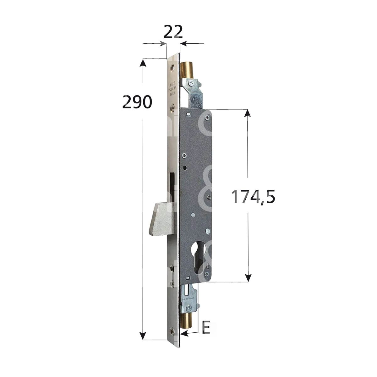 Ibfm 2504025 serratura per montanti triplice solo catenaccio a caduta e 25 foro sagomato ambidestra 1 mandate