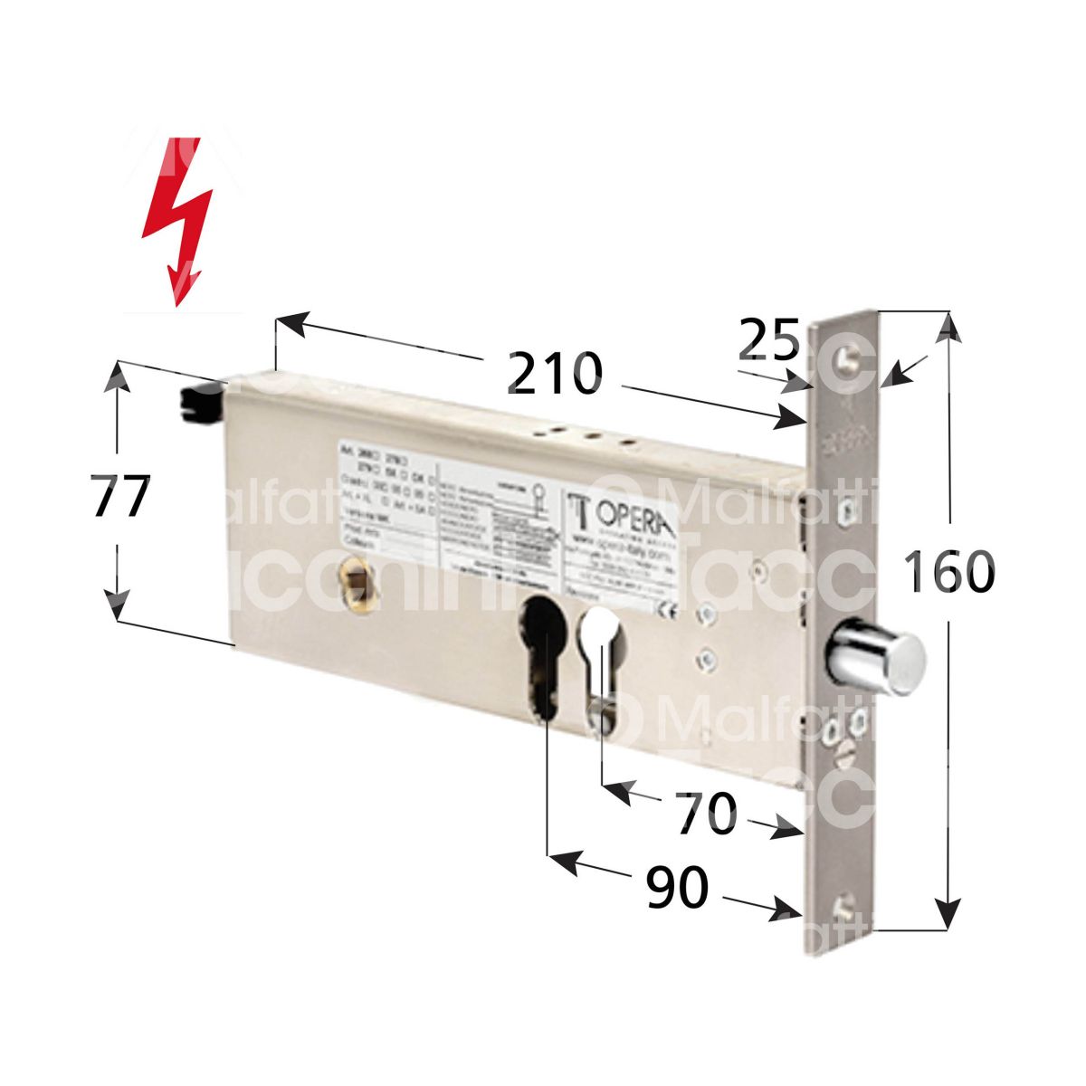 Opera 27808 elettropistone per fasce e 70/90 ambidestra con quadro maniglia chiuso in assenza corrente tensione 12 - 24v dc