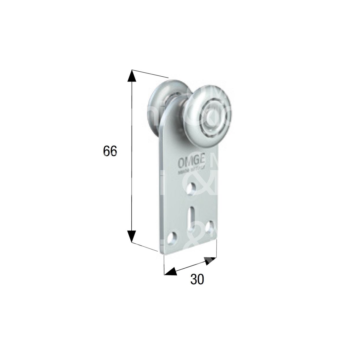 Omge 1028 carrello per scorrevoli art. 1028 roll-ge 20 2 ruote materiale acciaio Ø mm 24 fissaggio con piastra portata kg 35 per binario art. 20