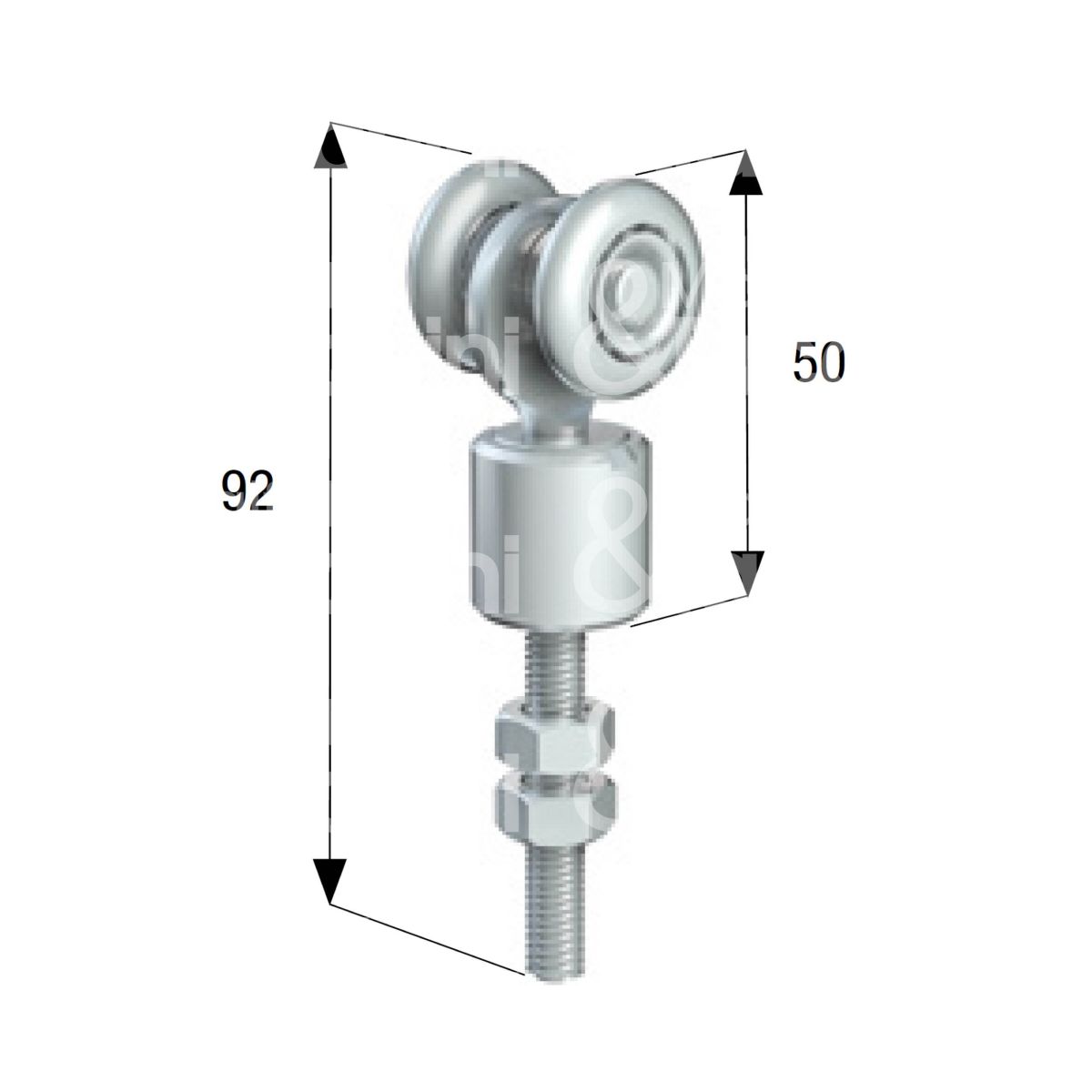 Omge 86 carrello per scorrevoli art. 86 roll-ge 20 2 ruote materiale acciaio Ø mm 24 fissaggio perno girevole m 8 portata kg 35 per binario art. 20