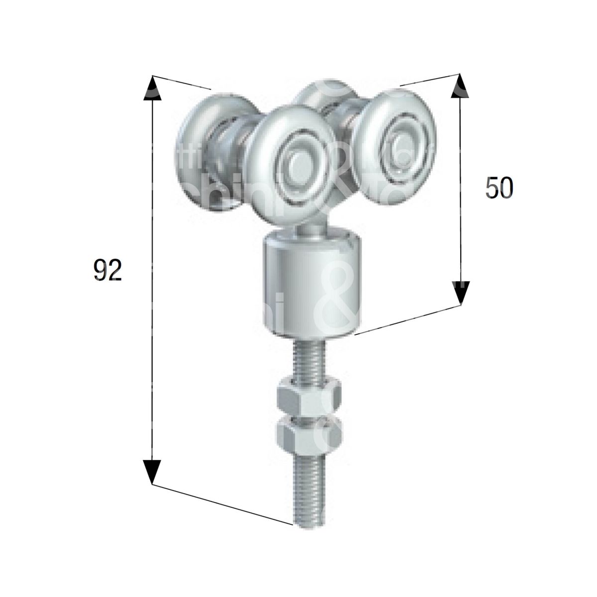 Omge 87 carrello per scorrevoli art. 87 roll-ge 20 4 ruote materiale acciaio Ø mm 24 fissaggio perno girevole m 8 portata kg 45 per binario art. 20