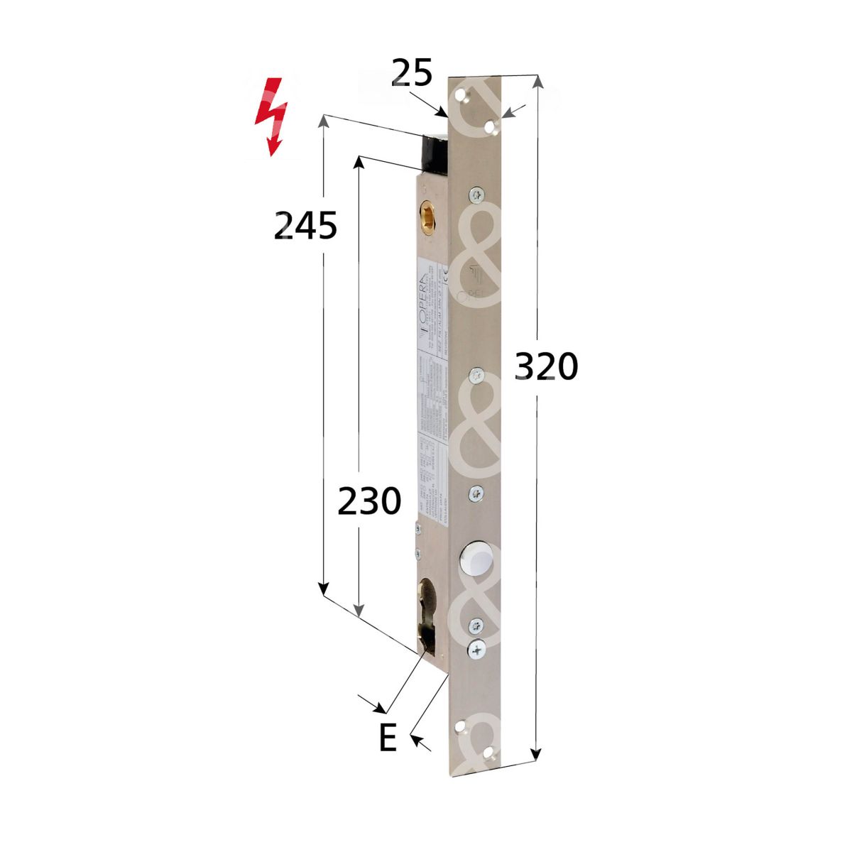 Opera 2560825 elettropistone e 25 ambidestra con quadro maniglia aperto in assenza corrente tensione 12 - 24v dc