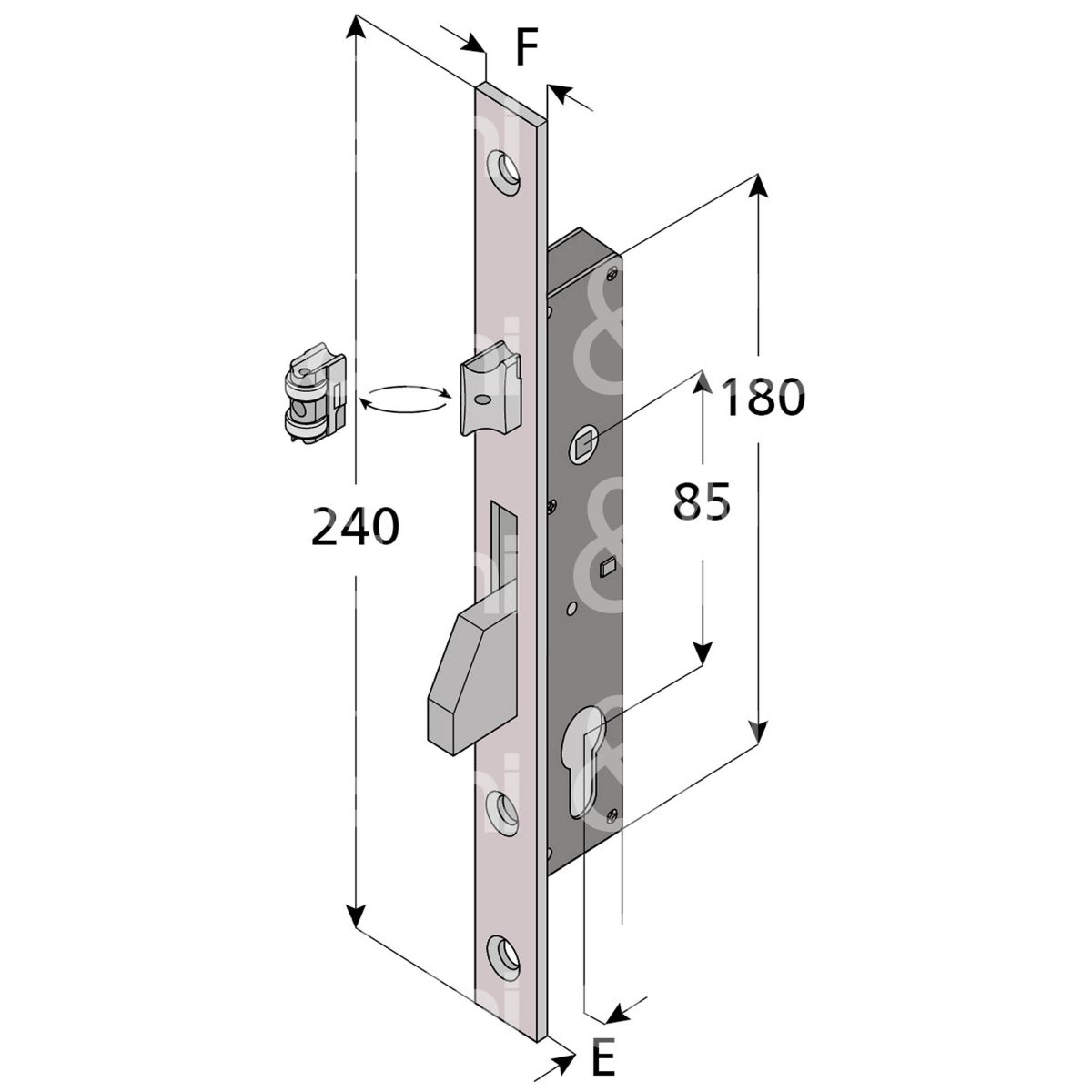 Welka 15525100 serratura per montanti laterale scrocco piÙ catenaccio a caduta e 25 foro sagomato ambidestra 1 mandate