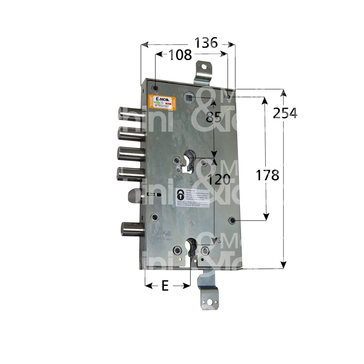Moia 6654280dfb serratura blindata a cilindro triplice e 63 ambidestra 4 catenacci piÙ scrocco e 1 servizio int. cat. 28 sporg. 3,5