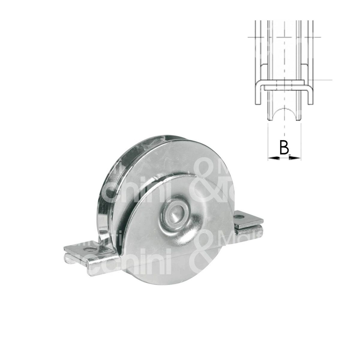 Ibfm 392080l ruota gola semitonda con supporto art. 392-080l acciaio zincato Ø mm 80 l mm 25 - 1 cuscinetto portata kg 250