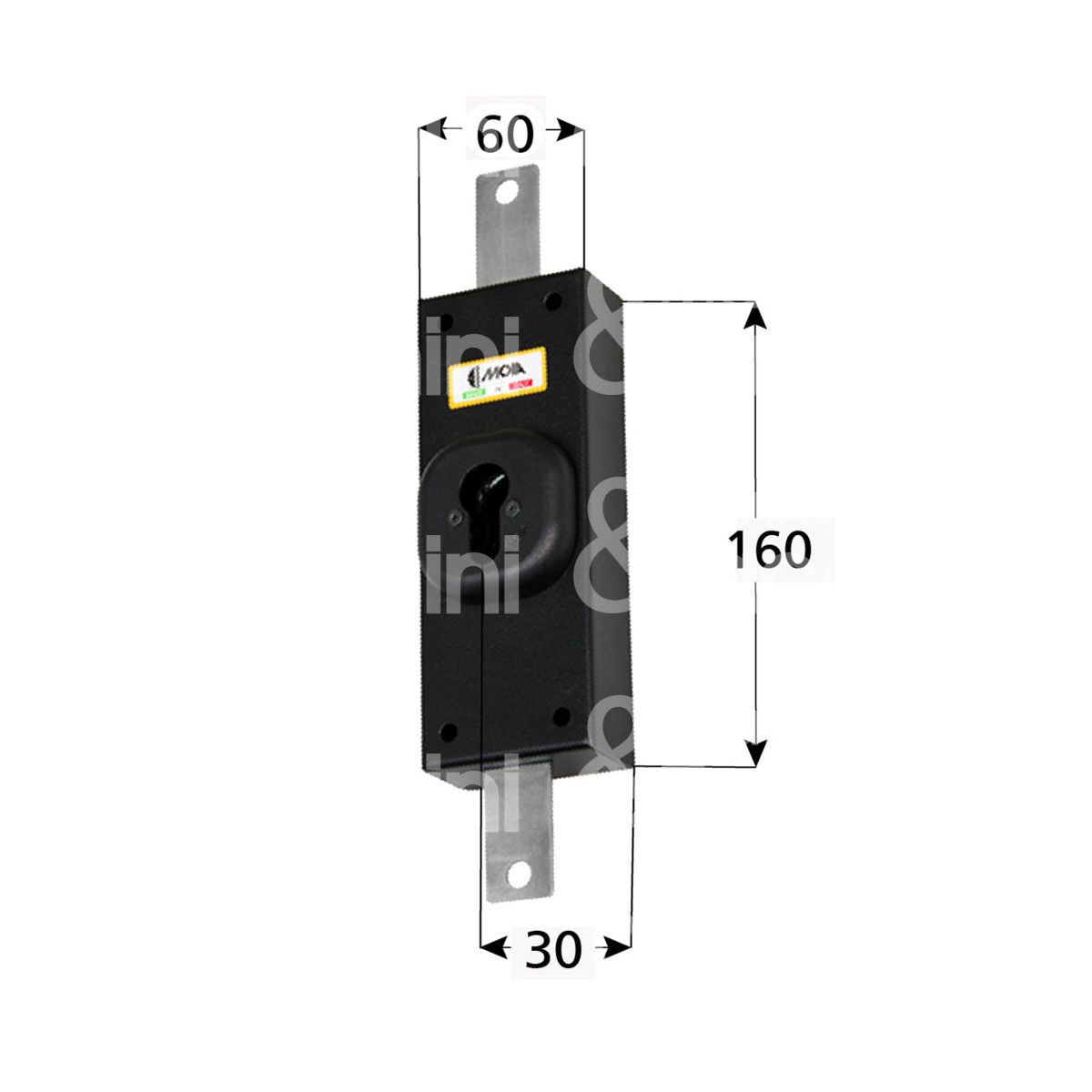 SERRATURA PER ANTA Applicare duplice Profilo europeo Predisposizione per l'installazione di una protezione cilindro mediante fori da M6 int. 38 mm Scarpetta porta cilindro anti-sfilamento Dotazione: Una scarpetta porta cilindro Una mostrina interna in plastica nera Una ferrogliera standard Una piastra di fissaggio per protezione cilindro Viteria di fissaggio Aste non incluse