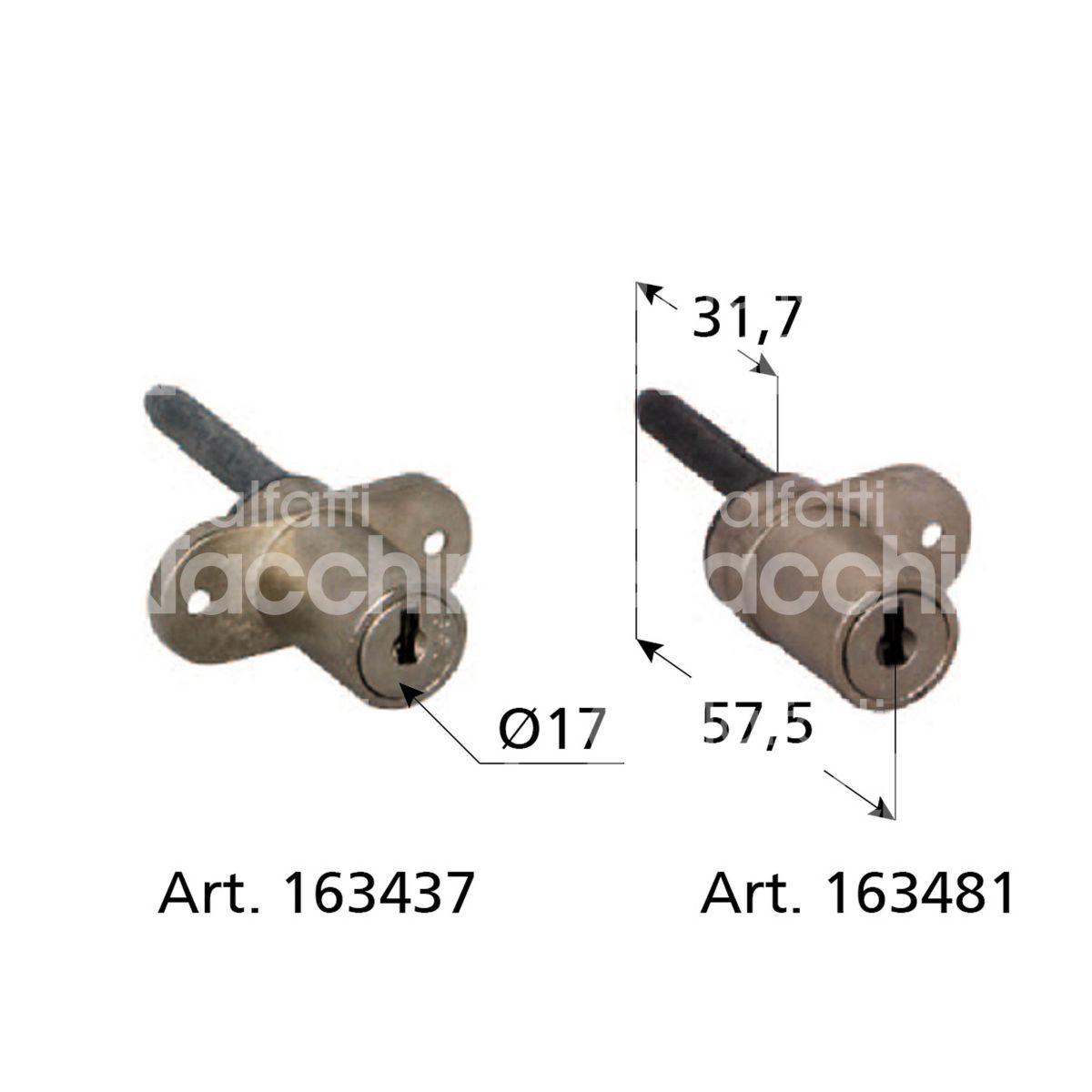 Moia 163437 serrature per cassetto con perno Ø 17 lunghezza mm 21 ambidestra chiave piatta kd rotazione 180° 2 estrazione nichelato