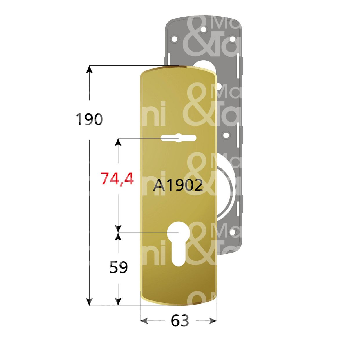 Disec ki902inxl placca foro doppia mappa piÙ cilindro cromo lucido interasse 74,4 mm 63 x 190