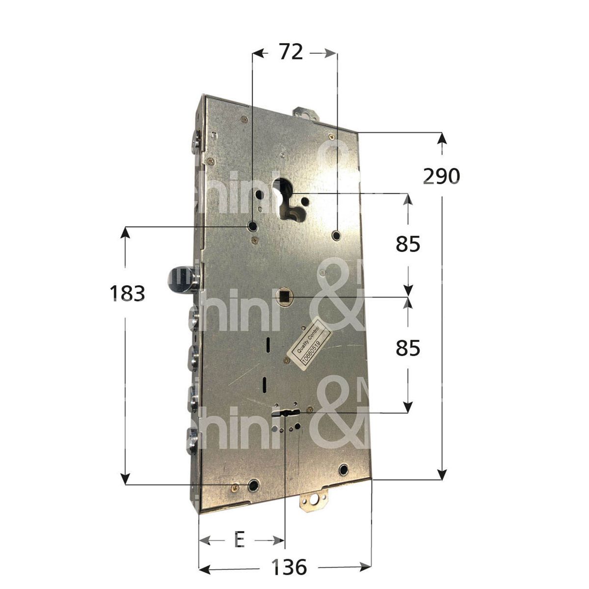 Fiam 6080328l0f1 serratura doppia mappa per blindata triplice e 63 ambidestra 4 catenacci piÙ scrocco e limitatore d'apertura int. cat. 28 sporg. 3,5