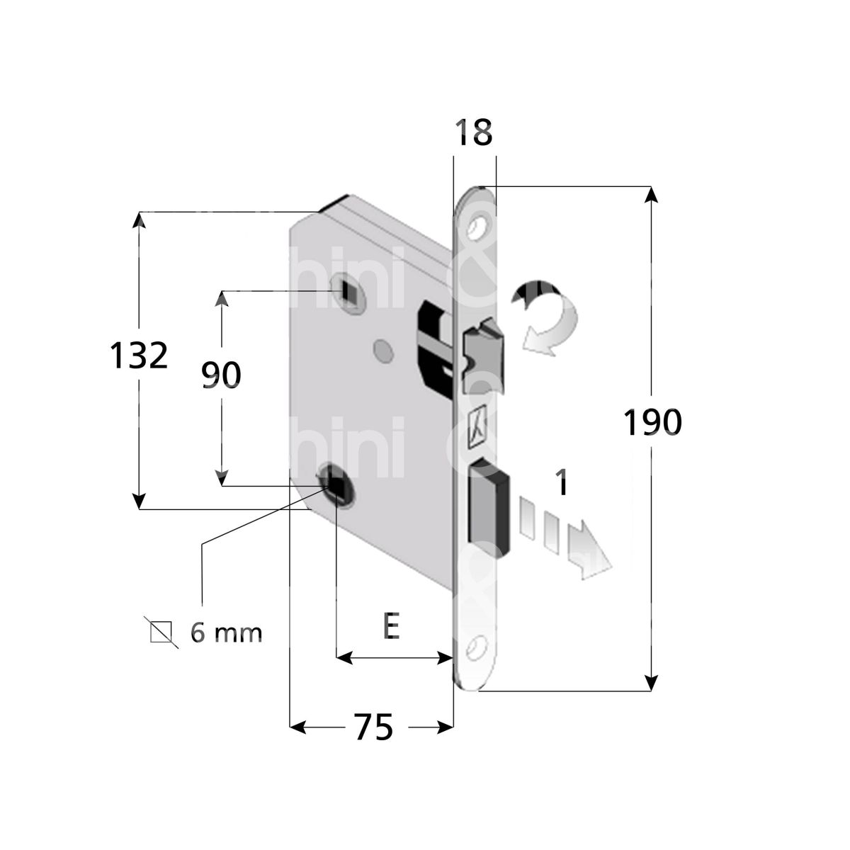 Bonaiti serrature 4824105083 serratura per bagno bordo tondo e 50 int. man. 90 scrocco piÙ catenaccio cromo satinato