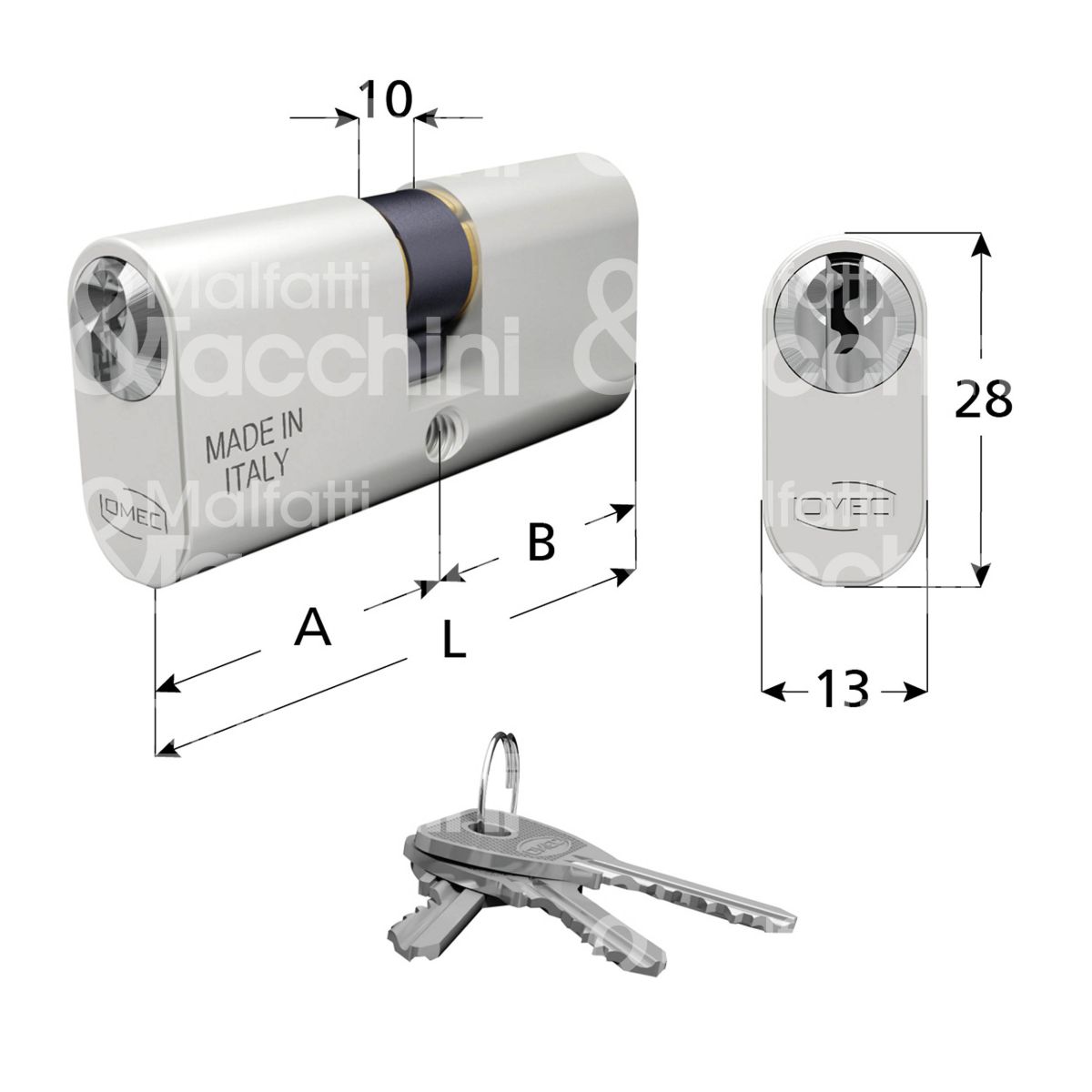CILINDRO OVALE Serie 140 L In alluminio leggero e resistente Con un trattamento metallurgico, che permette di ottenere maggiore resistenza confronto all'ottone tradizionale Il barilotto è dotato di guida-chiave per agevolarne la rotazione, i perni e le molle in acciaio inox ne favoriscono lo scorrimento e la durabilità 3 chiavi Progettati e certificati secondo la norma europea UNI EN 1303:2015
