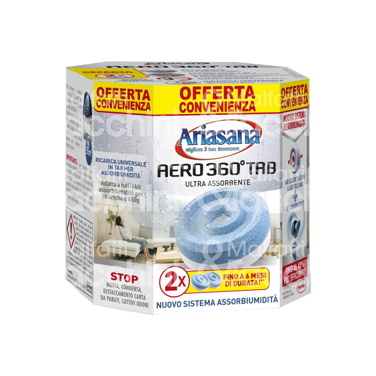 2 TAB ARIASANA AEREO 360° Ultra assorbente 2 ricariche per una durata fino a sei mesi Adatte a tutti i kit assorbiumidità per ricariche maggiori o uguali a 450 gr