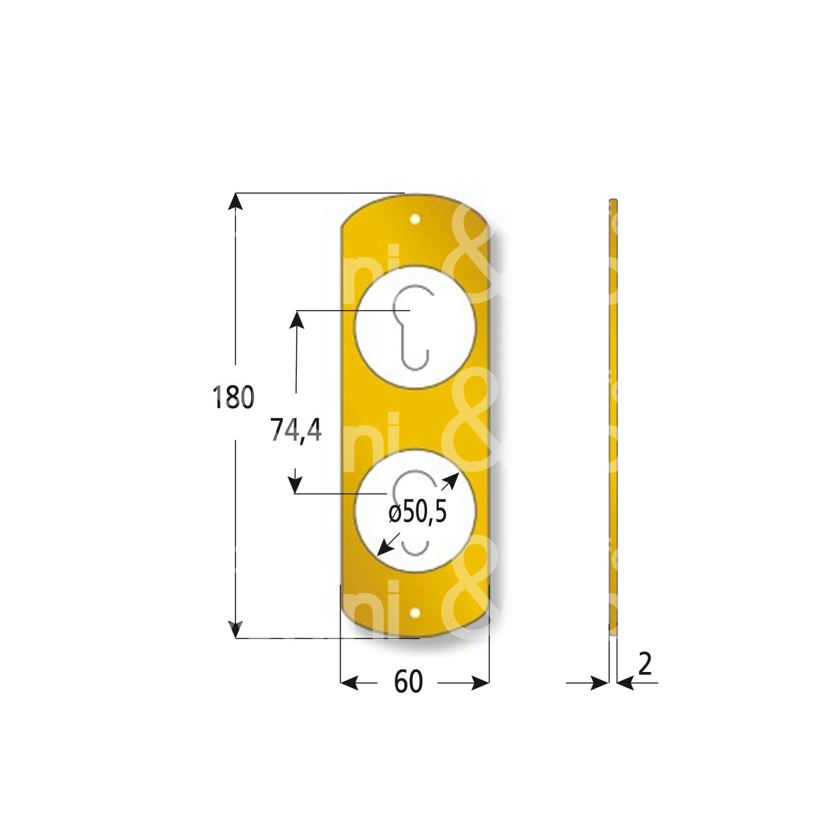 Azzi fausto pl112055ab placca foro doppio protettore alluminio bronzato interasse 74,4 mm 60 x 180 Ø 50,5