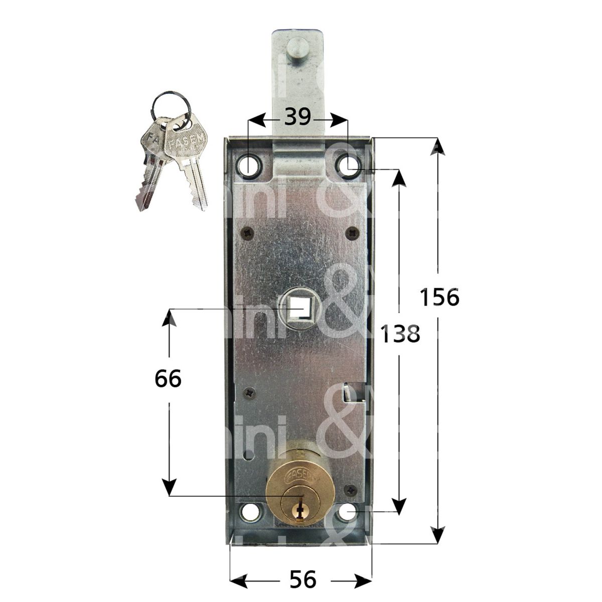 Fasem 10930 serratura per basculante a 1 punto di chiusura foro tondo / chiave piatta cifratura kd
