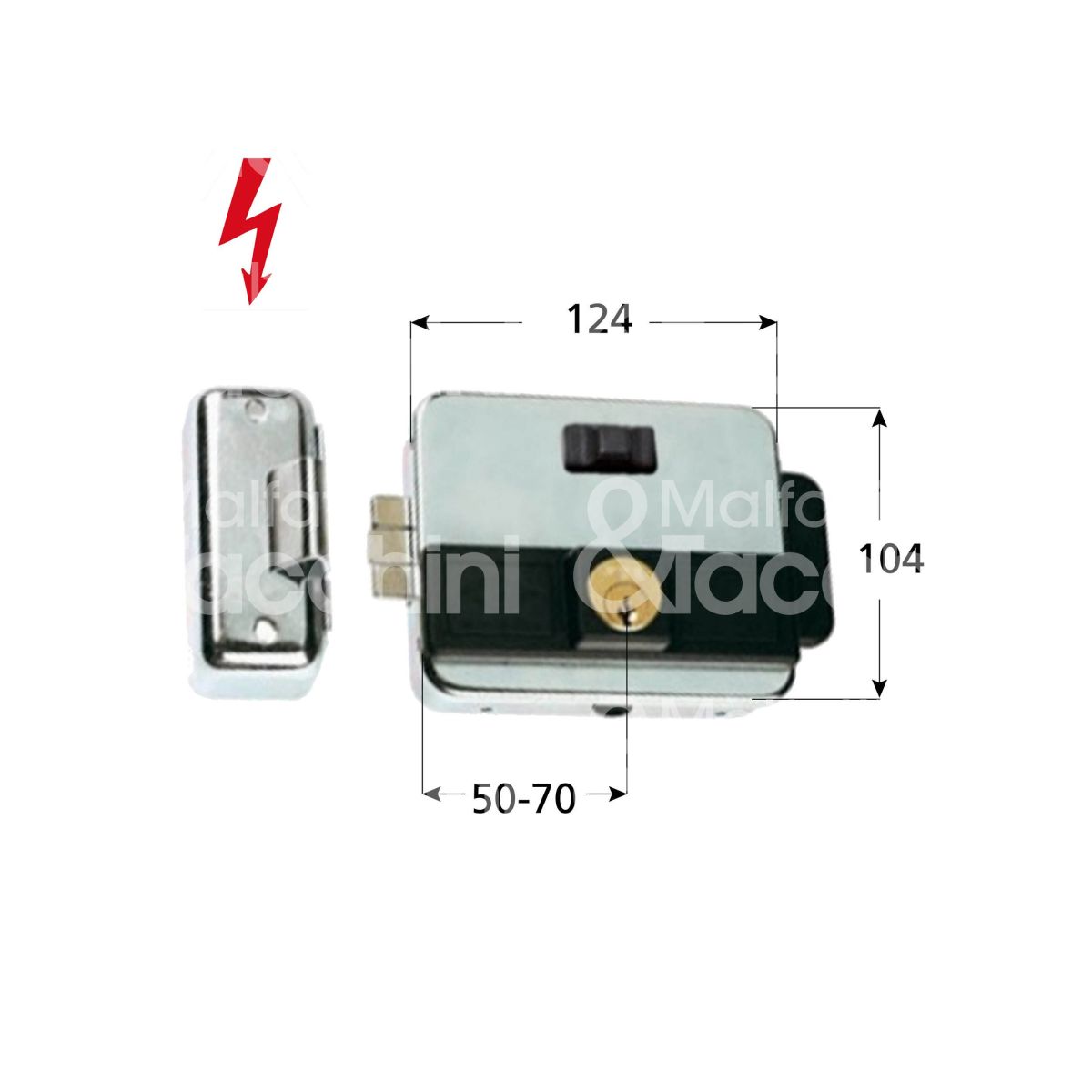 ELETTROSERRATURA "MULTIPLA" per porta e cancello Con pulsante Scrocco autobloccante Entrata regolabile Cilindro fisso Lunghezza cilindro 50 mm