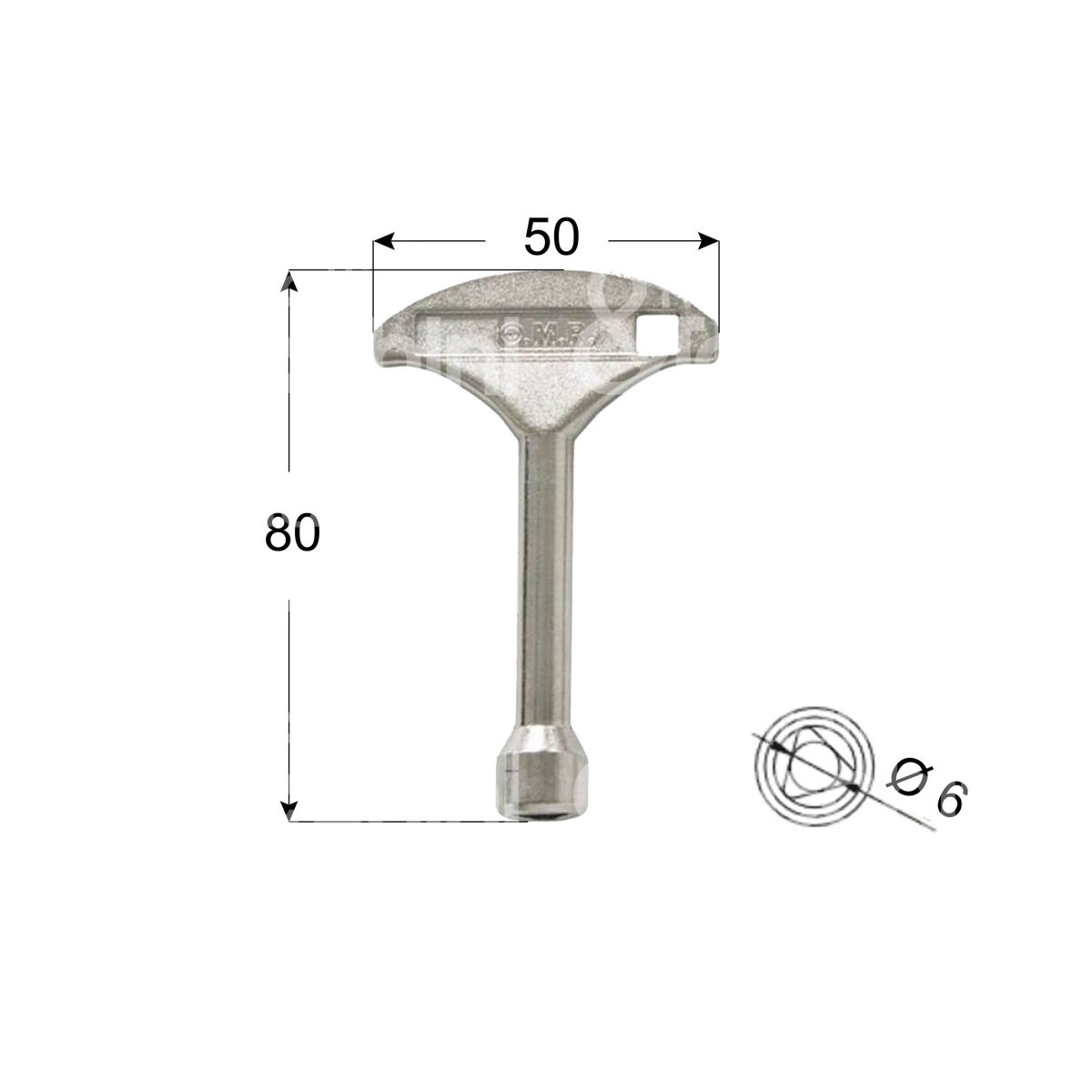 CHIAVE A IMPRONTA PER CHIUSURA CON PROLUNGA IMPRONTA T6 Testa a martello In zama nichelata