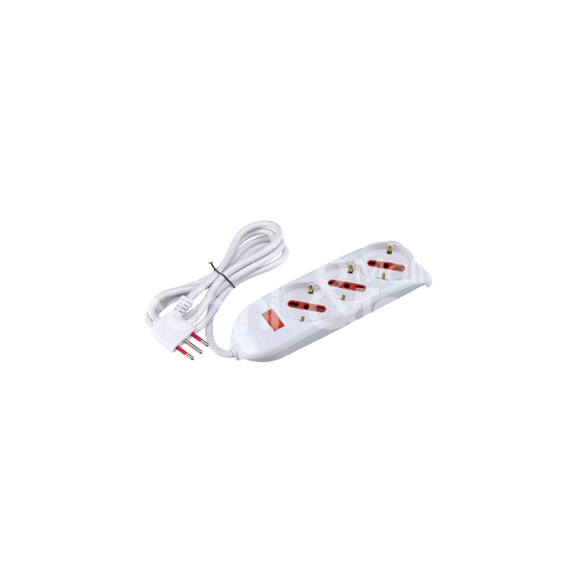 M&t 900 89015 multipresa 3 posti con interruttore art. rs94001t bianco uscite frontali 3 prese 2p+t 16a bipasso/schuko - cavo 1,5 mt. spina 2p+t 10a limitatore termico sovraccarico