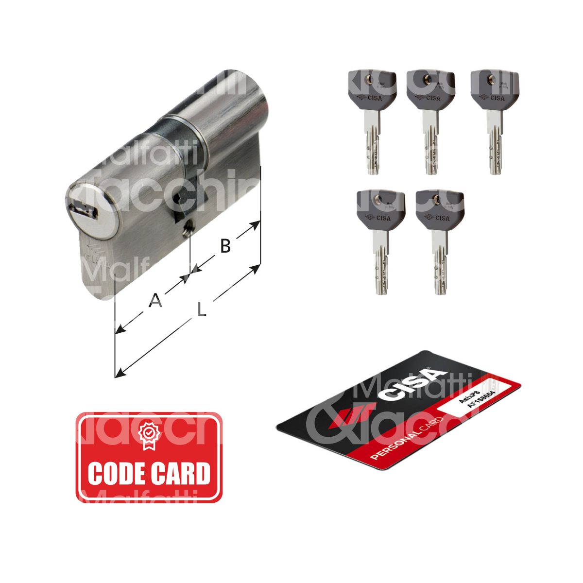CILINDRO DI SICUREZZA ASIX P8 Frizionato Ottone nichelato 5 chiavi Code card