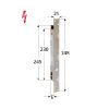 ELETTROPISTONE DA INCASSO Serie Prima Aperto in mancanza di corrente Apertura meccanica con cilindro europeo Frontale lungo per inserimento in sostituzione alle tradizionali serrature elettriche da montare Catenaccio rotante in acciaio temprato antitaglio Pulsanti per il monitoraggio e la regolazione dei tempi di richiusura da 0-5 sec. all’accostamento dell’anta da 0-60 sec. se l’anta non viene aperta. Le temporizzazioni sono disinseribili per l’utilizzo dell’elettropistone con elettroniche di gestione esterne Alimentatore 05320A da ordinare a parte (Non utilizzabile il cilindro con pomolo interno)