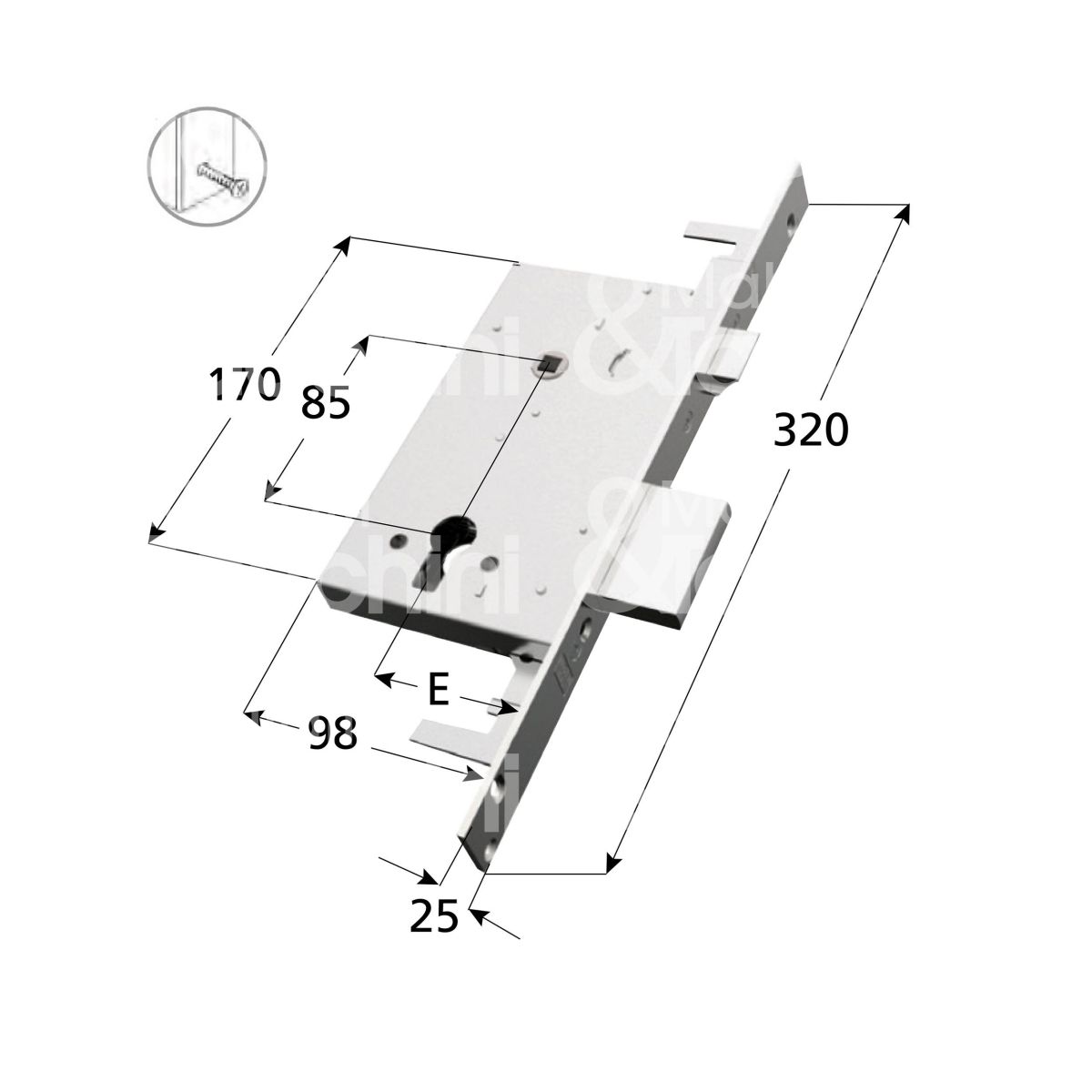 Mottura 89b850w000 scrocco piÙ catenaccio 2 mandate cilindro sagomato 57 triplice serratura infilare per blindata a cilindro rce