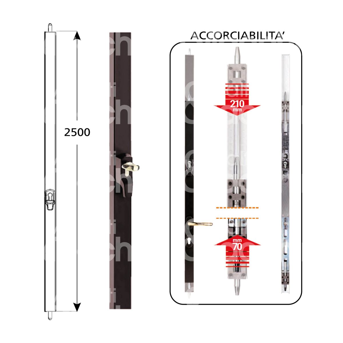 Mul-t-lock e11002500m minisbarra verticale ema universale dx foro sagomato 2 punti di chiusura misura 2500