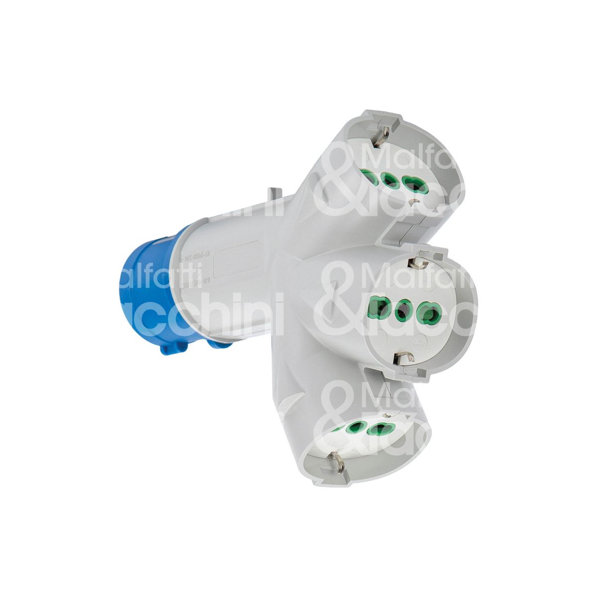 ADATTATORE CEE INDUSTRIALE TRIPLEX Spina 2P+T 16A 200-250V 6h IP44 3 Prese bipasso italo/tedesche 2P+T 16A