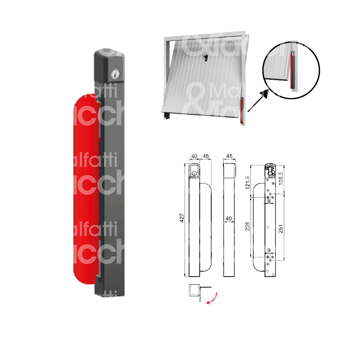 SERRATURA A BANDIERA PER BASCULANTI Art. BAN500 Mezzo cilindro europeo (30/10) non incluso Montaggio destro e sinistro Finitura in alluminio nero Dimensioni: 427 x 40 x 45 mm