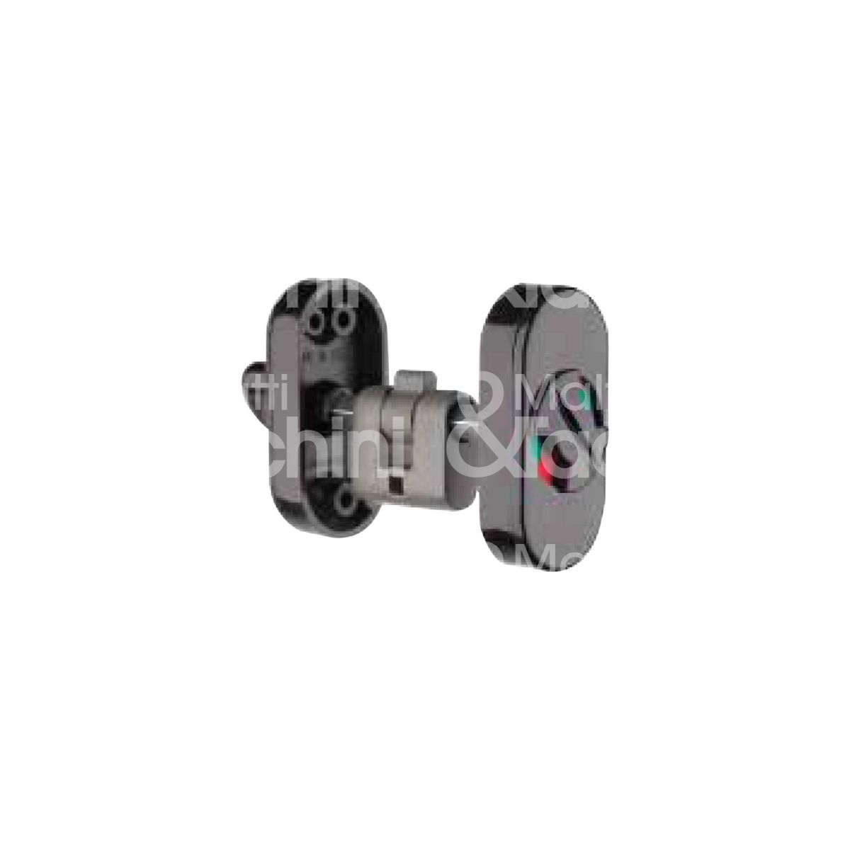 NOTTOLINO LIBERO/OCCUPATO Con adattatore ovale Con doppio indicatore rosso/verde ad alta visibilità Quadro 6 mm Misura nottolino: 30 x 62 mm Lunghezza adattatore: 30 mm In polyamide (nylon) Il nottolino può essere montato tramite adattatore sostituendo il cilindro chiave.