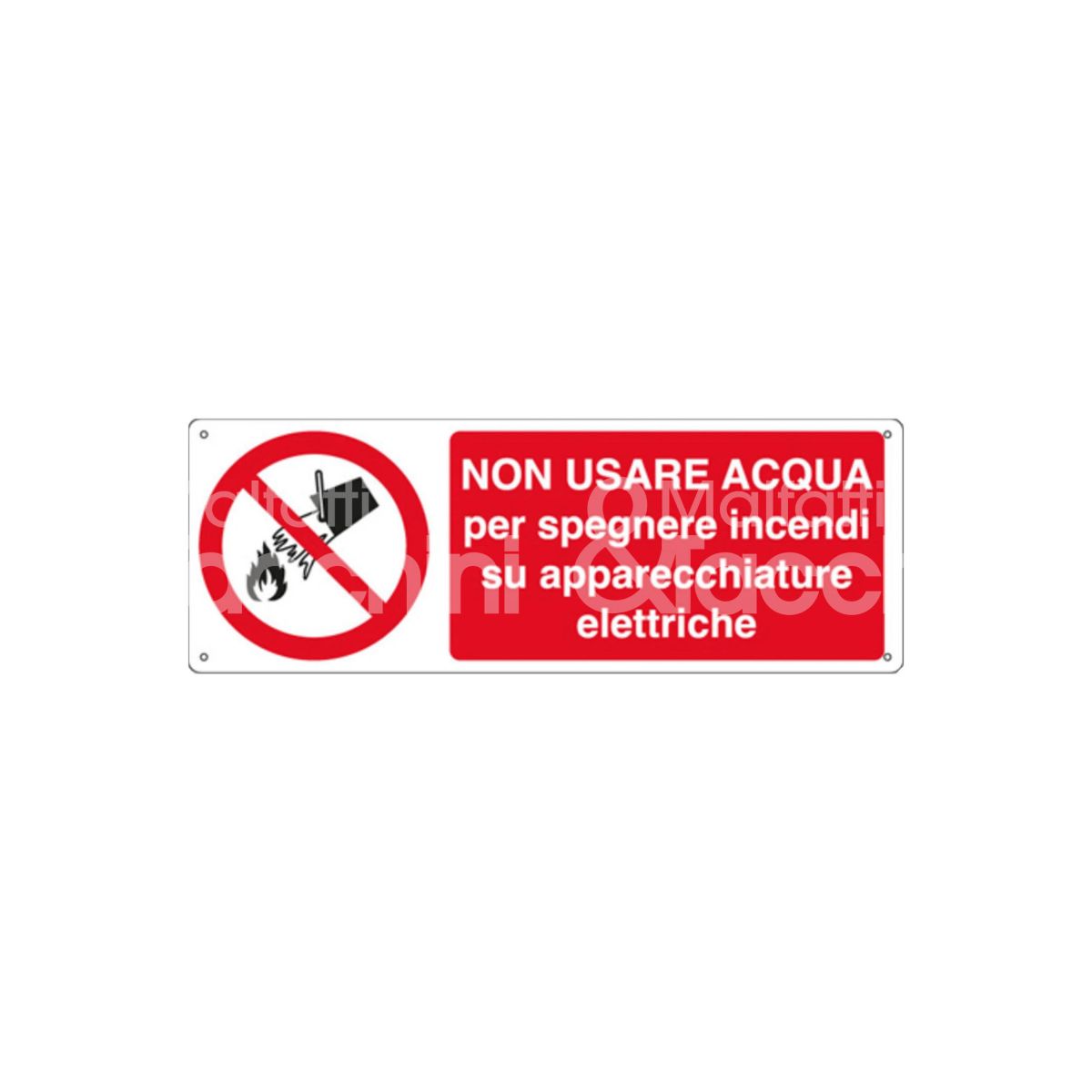 CARTELLO SEGNALETICO DIVIETO "Non usare acqua..." Formato 350x125 mm In alluminio Colore rosso