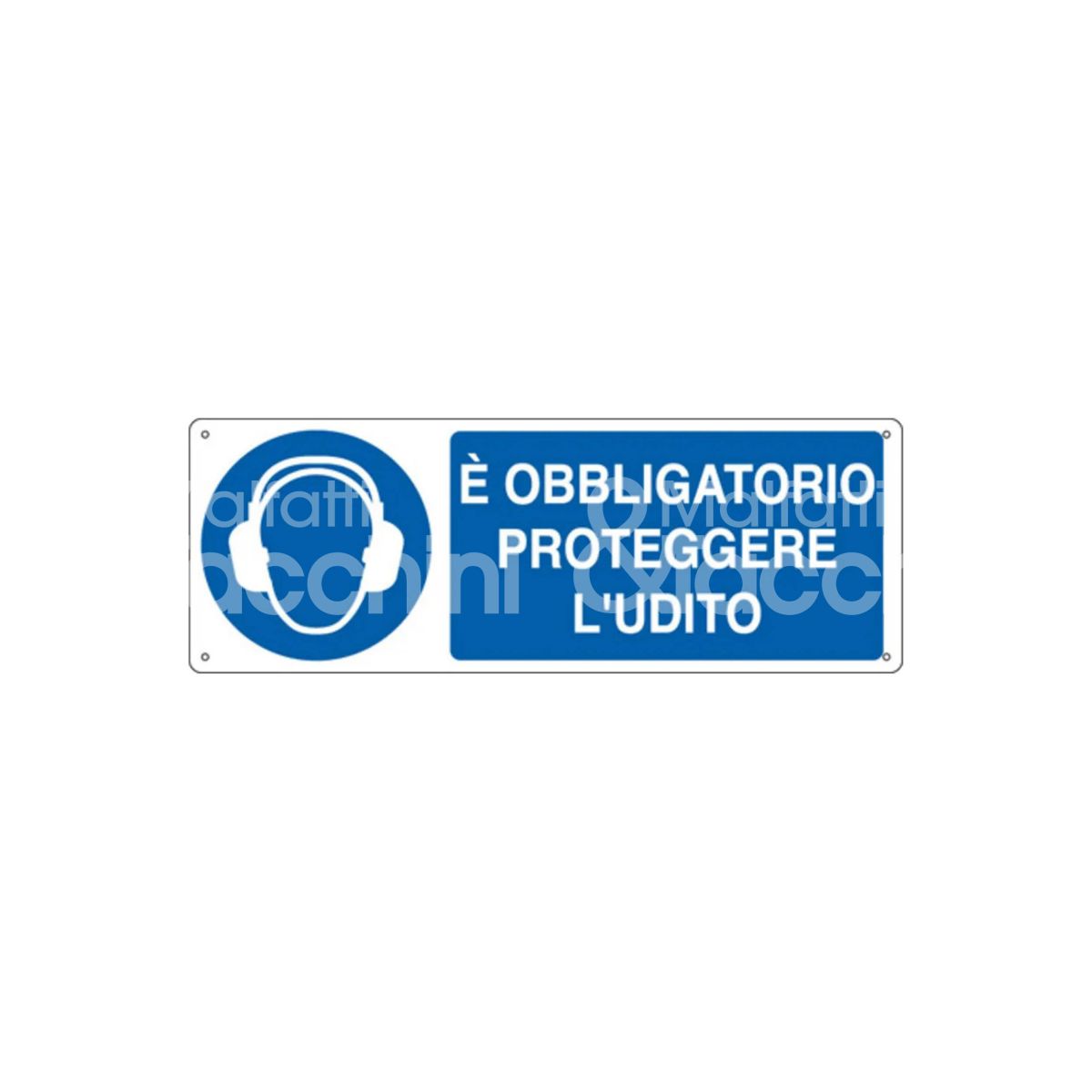 CARTELLO SEGNALETICO OBBLIGO "Proteggere l'udito" Formato 350x125 mm In alluminio Colore blu