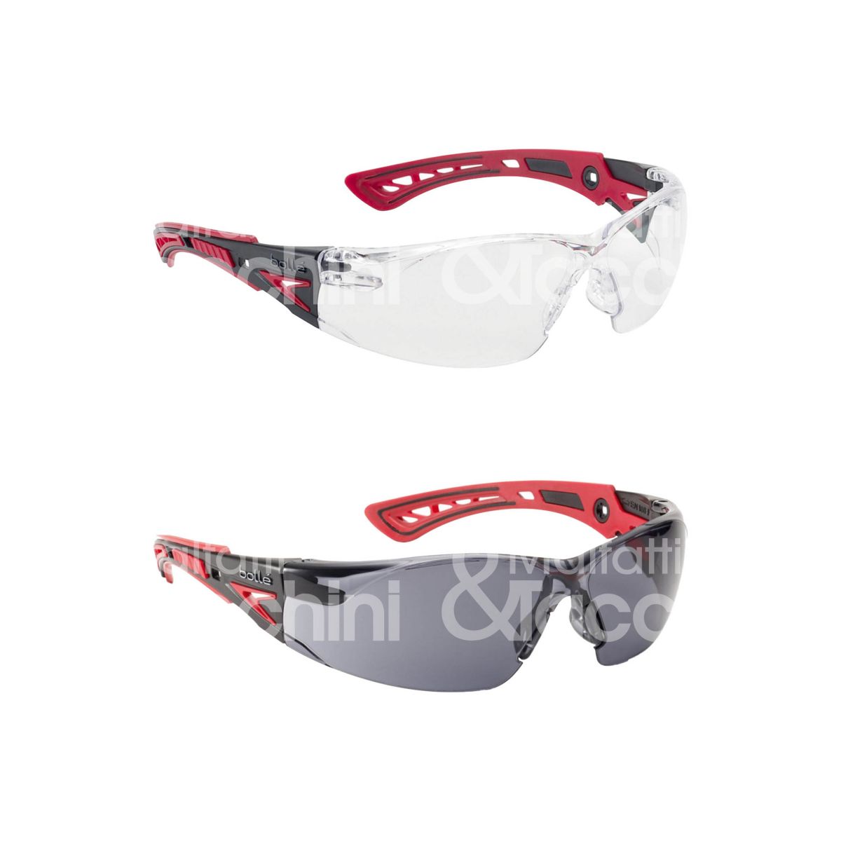 Bolle safety rushppsi occhiali protezione rush plus materiale policarbonato lenti trasparenti montatura rosso/nera