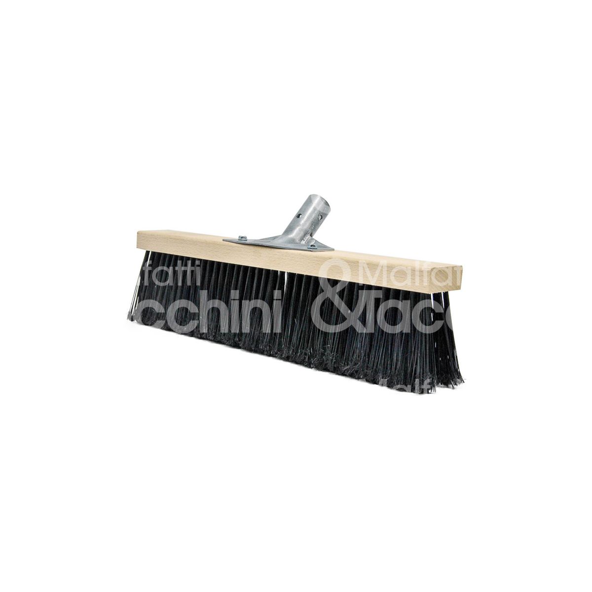 SCOPONE INDUSTRIALE 4 FILE Filato pet nero rigido Attacco in metallo conico Base in legno