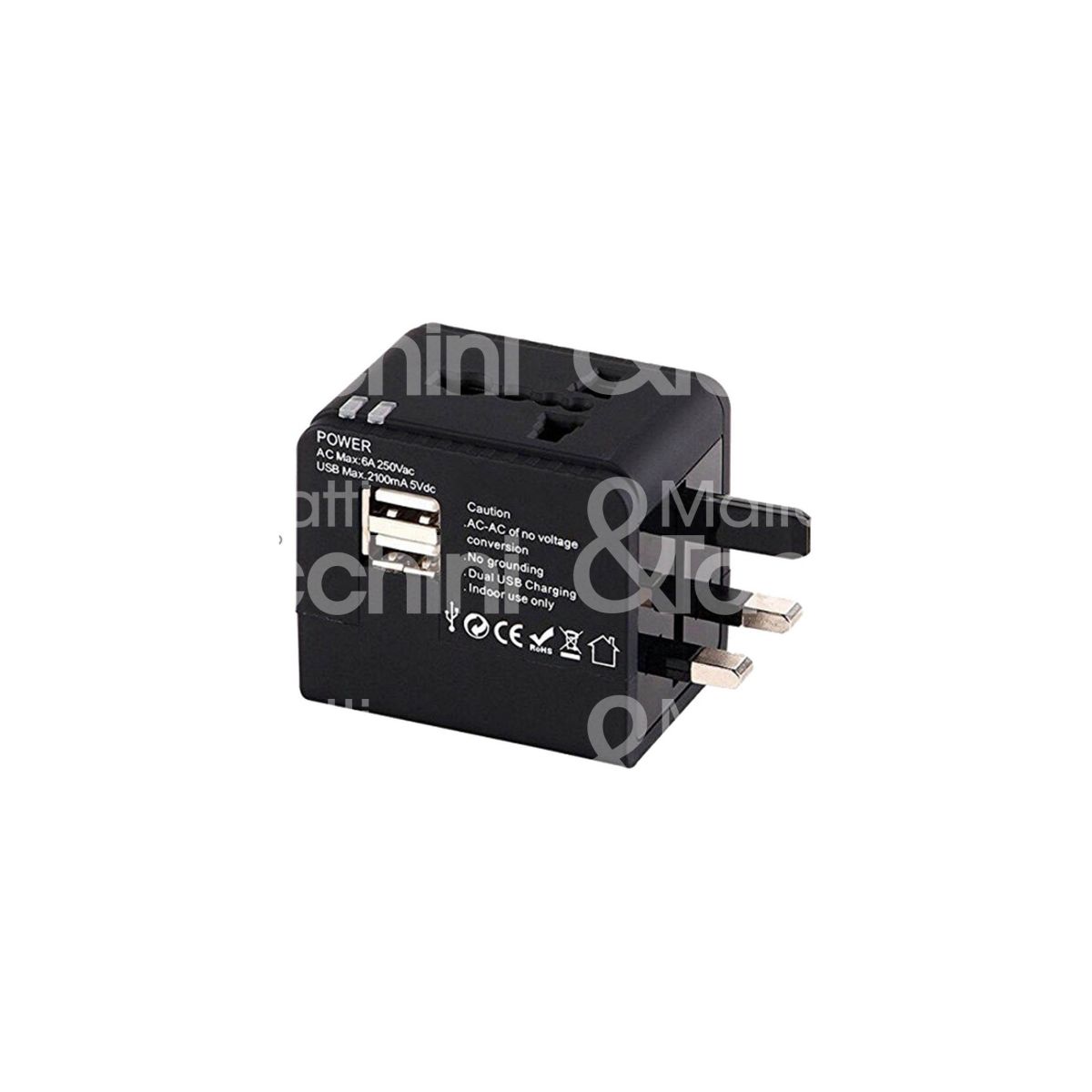 Proxe 722509 adattatore da viaggio art. 722509 nero spina universale / presa universale + 2 prese usb - 6 a - 100/240v -