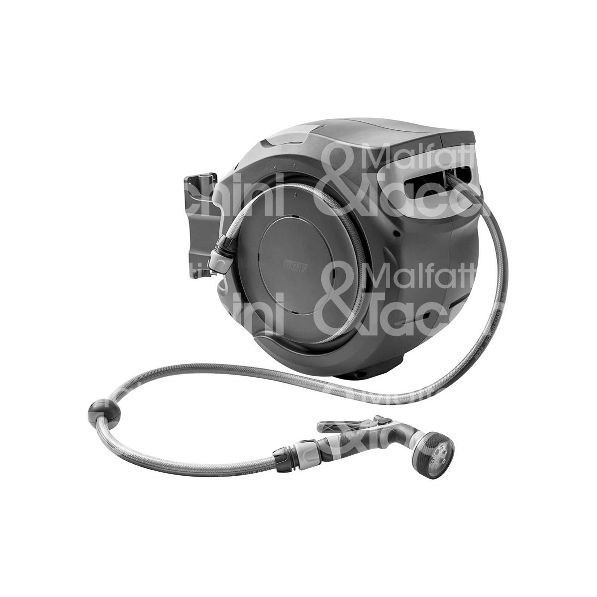 G.f. 5869 avvolgitubo murale girevole art. gf80005869 finitura grigio capacità tubo 1/2 pollici 20 mt kit tubo, raccordo, presa rubinetto